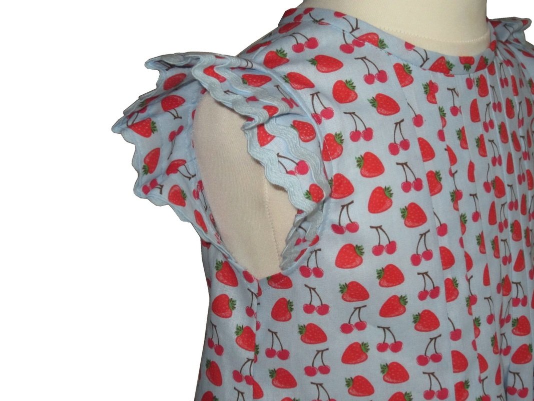 Schnittmuster für ein edles Kinderkleid mit kleinen Falten oder Biesen, die im Oberteil bis zur Taillenhöhe zugenäht werden. Die Rockweite ergibt sich aus den aufspringenden Falten, dadurch erzielt man eine feminine und nostalgische Optik. Die Falten verlaufen im Vorder- und im Rückenteil. Das Rückenteil hat in der Mitte eine kurze Verschlussleiste, die Sie mit eingenähten oder gestanzten Druckern bestücken können, dadurch ist das Kleid leicht anzuziehen. Der Ärmel ist ein in kleine Fältchen gelegter Flügelärmel.
