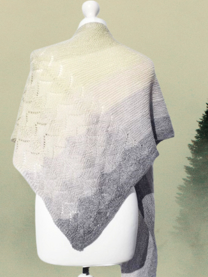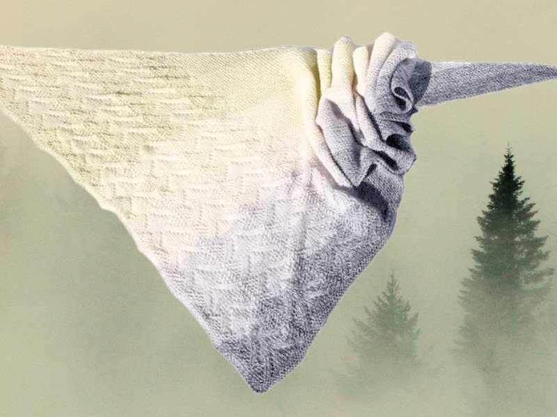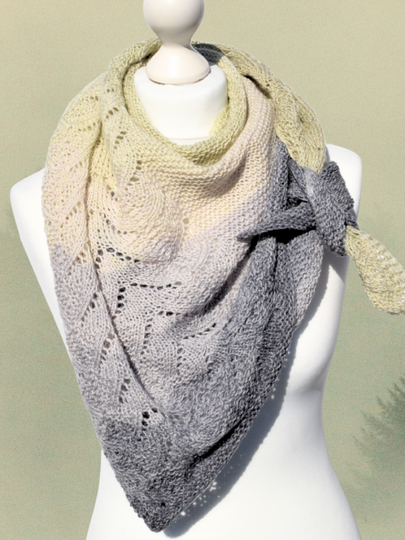 Misty Forest – sanfter Nebel steigt hoch und scheint im Dunst der Sonne durch die Tannen. Der Duft von feuchter Erde und Moos liegt in der Luft und man hört das zwitschern der Vögel. Ein morgendlicher Herbst-Spaziergang hat mich zu diesem herbstlichen Lacetuch inspiriert.