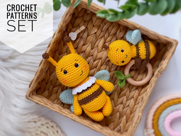 Wenn Sie meine Häkelanleitung singen, können Sie ein süßes Amigurumi-Set aus zwei Städten erstellen: Rasselbiene und Amigurumi-Hummel.