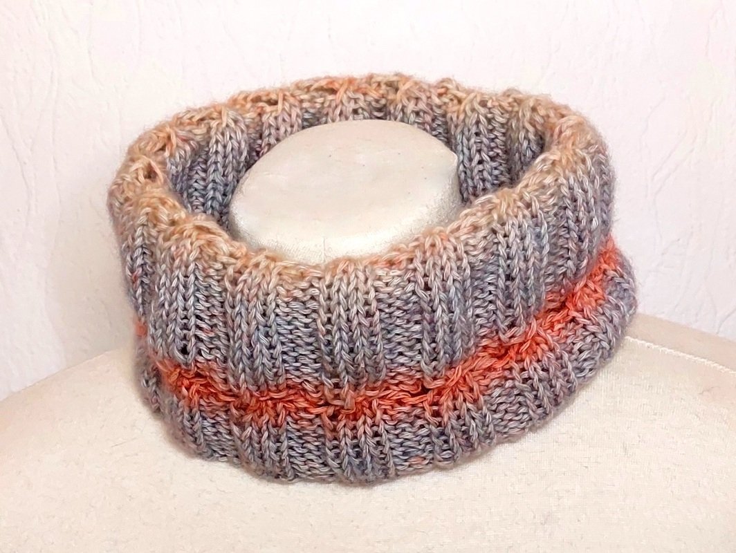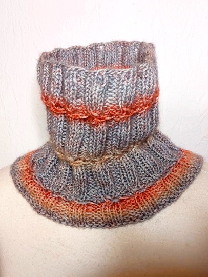 Mein Loop hat einen Umfang von ca. 60cm ungedehnt/ca.70cm gedehnt, Länge/Höhe ca. 21cm.