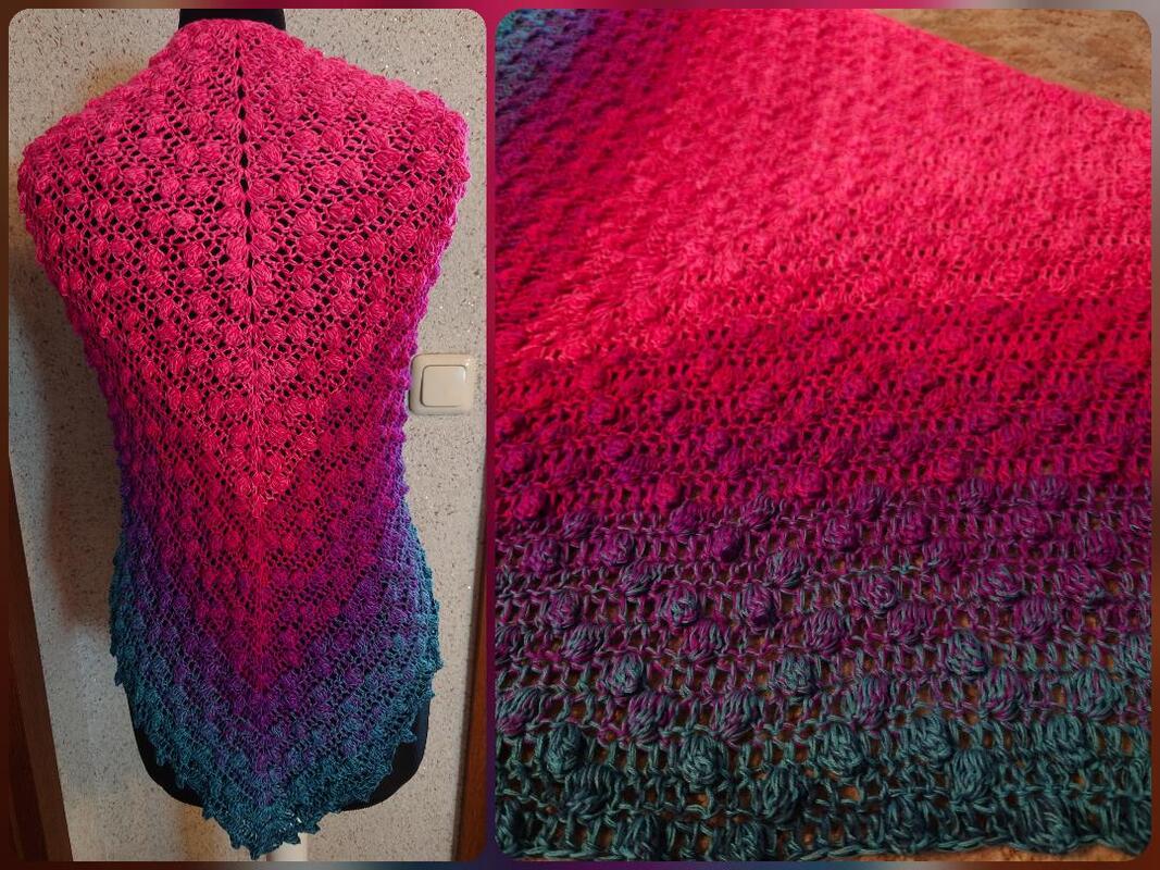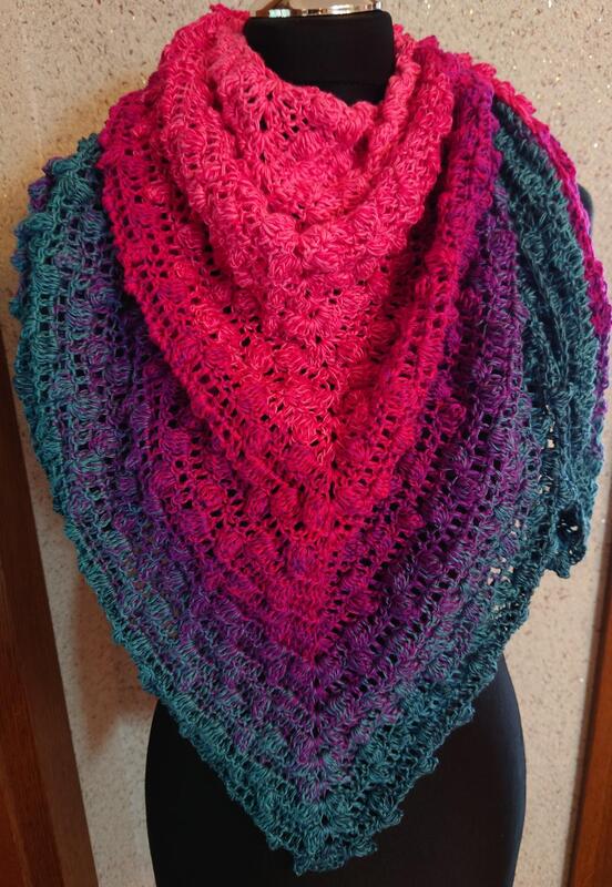 Die Anleitung zum Tuch besteht aus schriftlich ausformulierten Reihen und beinhaltet eine Häkelschrift.
