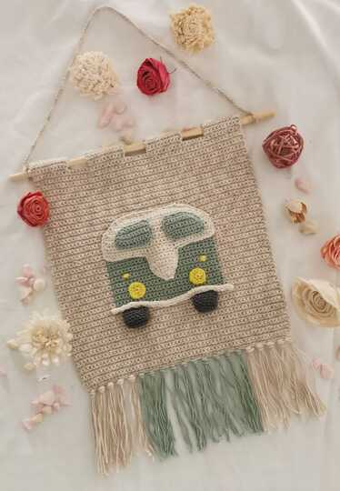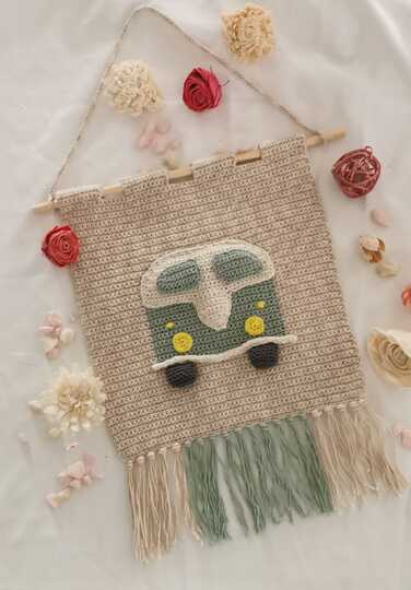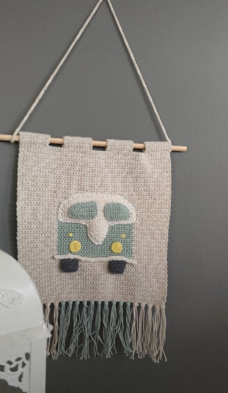 Passend zu meiner Anleitung für die Babyrassel Camper, gibt es jetzt den Wandhänger. So kannst du nicht nur Babys beschenkten, sondern auch größere Kinder. Denn der Wandhänger eignet sich wunderbar als Deko für das Kinderzimmer. Du kannst auch ein Außergewöhnliches Set kreieren, indem du sowohl die Babyrassel (diese gibt es in separat zu erwerben) als auch den Wandhänger häkelst.