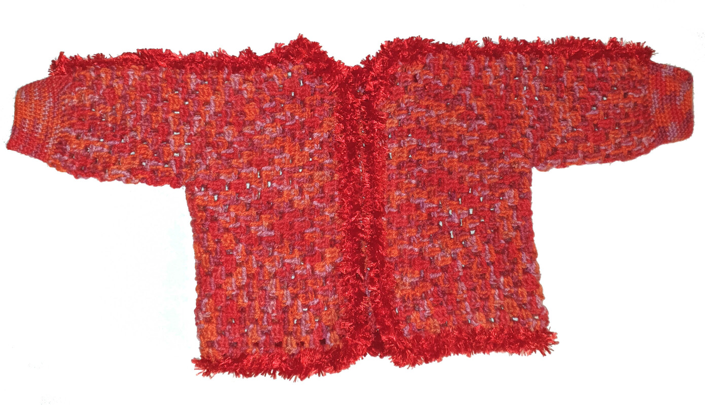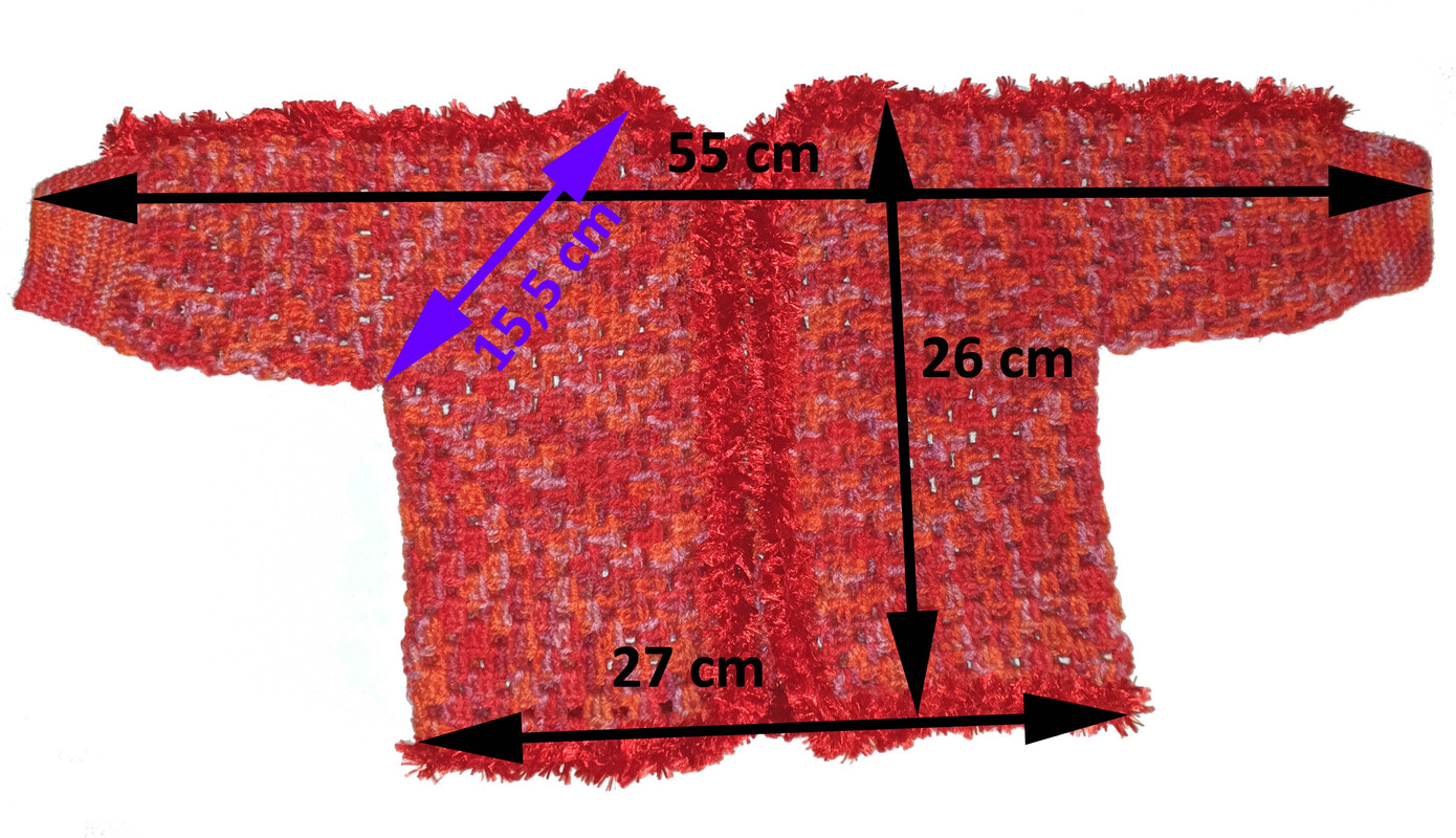 Gehäkelt wurde die Jacke mit Breite 26 cm, Höhe 27 cm