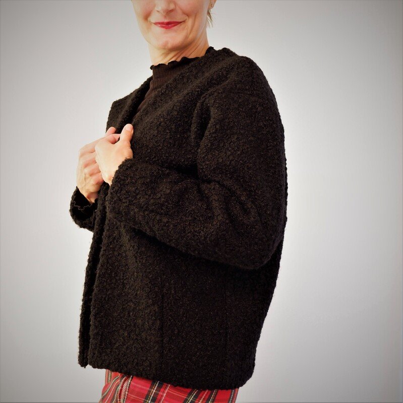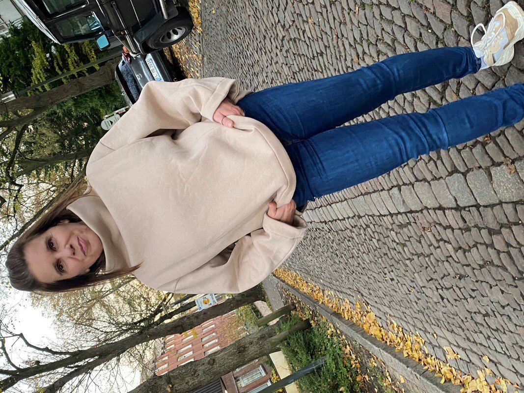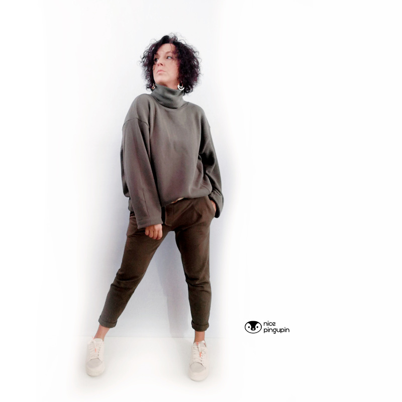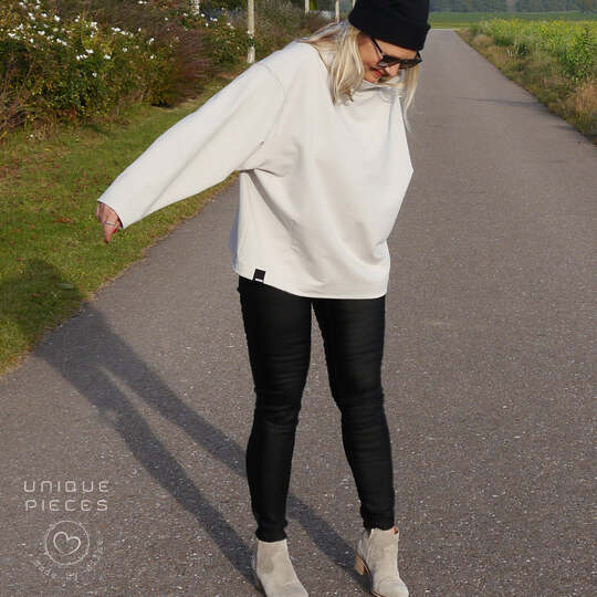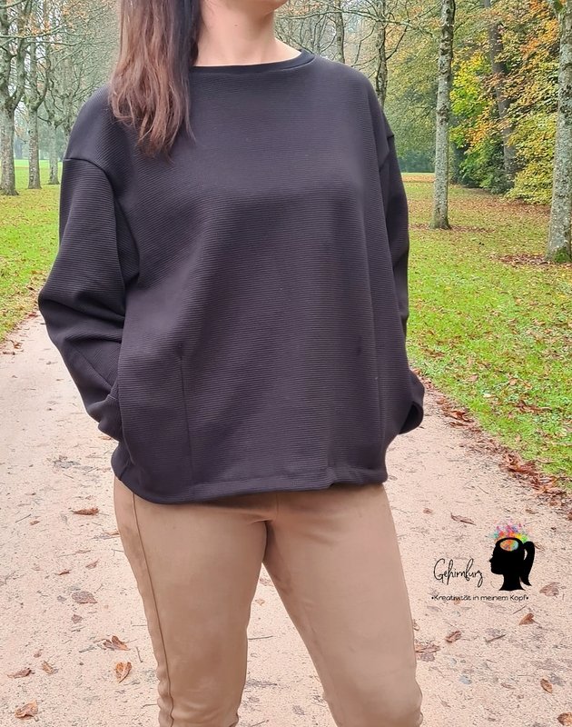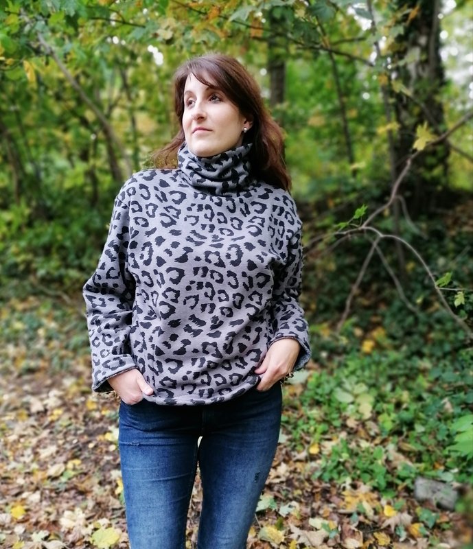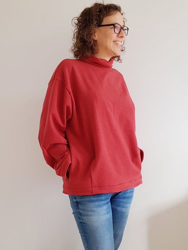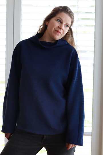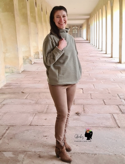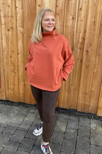 Cooler Oversized-Sweater in O-Shape-Silhouette mit Rundhals, Rollkragen oder angeschnittenem Turtle Neck. Wahlweise kannst Du CYLE auch als V-Ausschnitt-Cardigan mit Zipper nähen. Nahttaschen sind ebenfalls im SM enthalten :-) Es ist ein toller Allrounder, den man super auch als Jackenersatz anziehen kann.