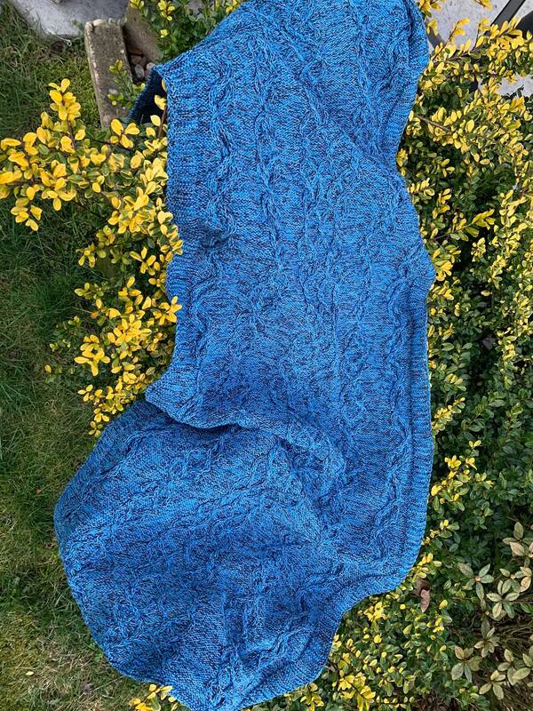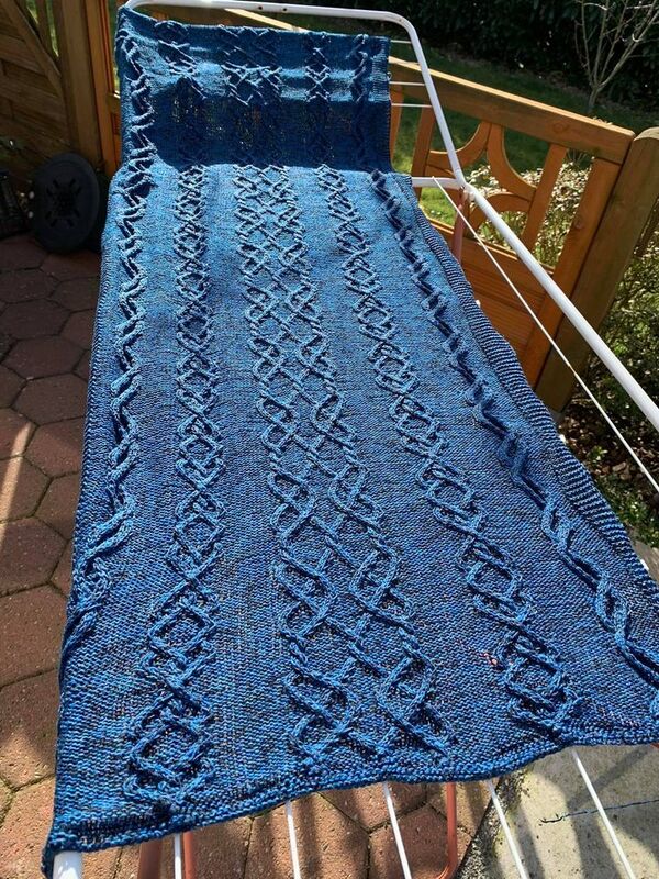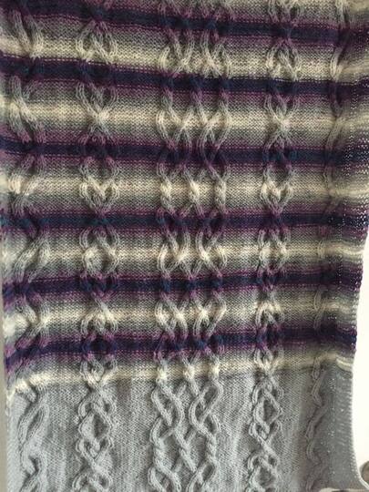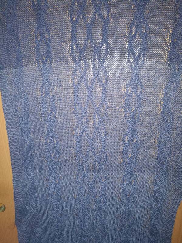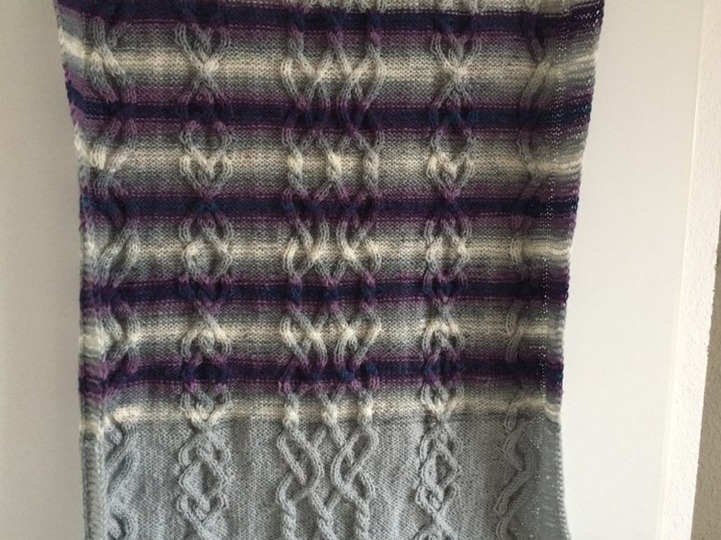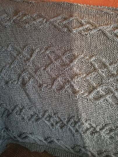 Die Stola ist ein Mix aus 3 keltischen Mustern, die gemeinsam mit linken Maschen ein schönes Bild ergeben. Ich habe in der Anleitung die Mustersätze komplett beschrieben. Da sie unterschiedlich in der Höhe sind, druckt bitte beide aus, schneidet sie auseinander und legt sie einzeln nebeneinander. So dürfte es auch nicht so erfahrenen Strickerinnen nicht schwer fallen, die Stola zu stricken.