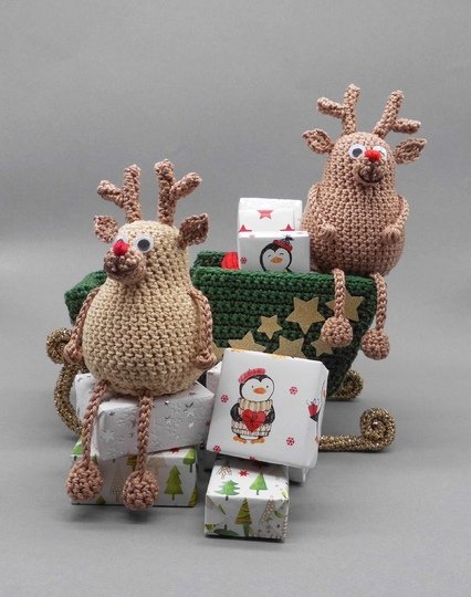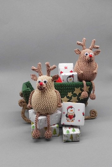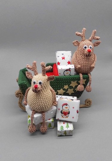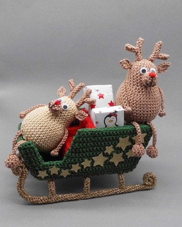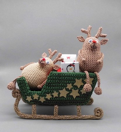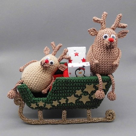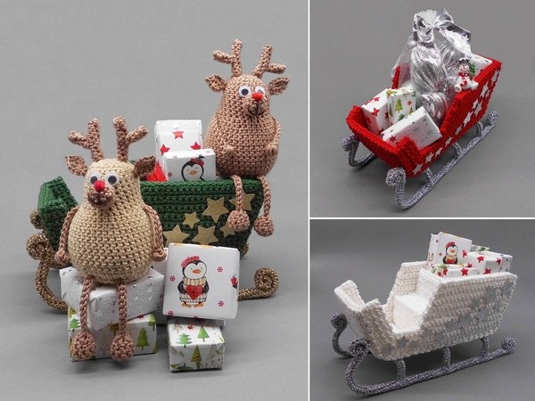 Die Rentiere und der Schlitten können auch von Anfängern mit etwas Übung einfach nachgehäkelt und vielseitig zur Dekoration genutzt werden.
