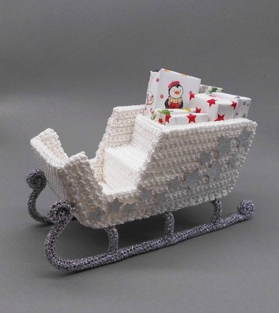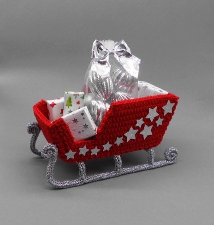 Der Gepäckraum des Schlittens bietet viel Platz für hübsch verpackte Geschenke, einen Schoko-Weihnachtsmann, eine Tüte Trüffel, Pralinen oder selbstgebackene Kekse. Um noch mehr Platz dafür zur Verfügung zu haben, kann der Schlitten auch ohne die Sitzbank gearbeitet werden.