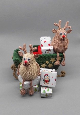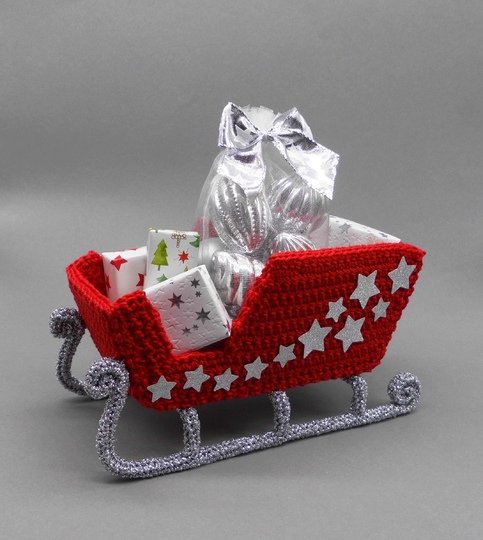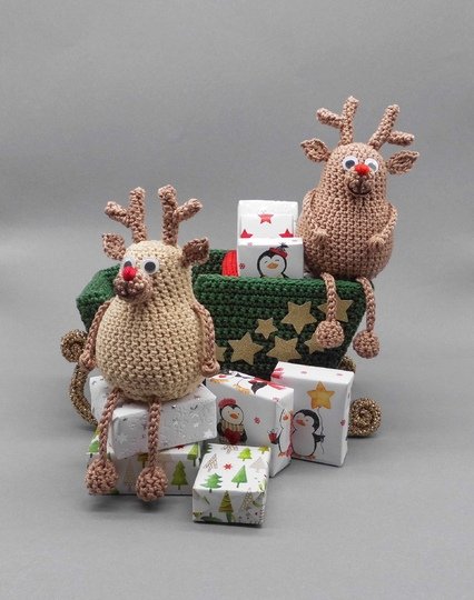 Die PDF-Datei umfasst zusätzlich zur schriftlichen Häkelerklärung auch die Häkelschriften für den Schlitten und Schablonen für die Sterne, die Kufen und sehr einfache kleine Deko-Schachteln zum Verpacken in Geschenkpapier. In der Anleitung gibt es sehr viele detailreiche Fotos, damit Du den schönen, vielseitigen Schlitten und die Kantenhocker-Rentiere ganz einfach, Schritt für Schritt, erfolgreich nachmachen kannst.