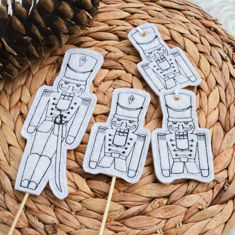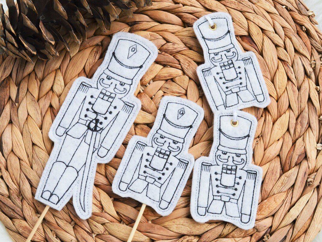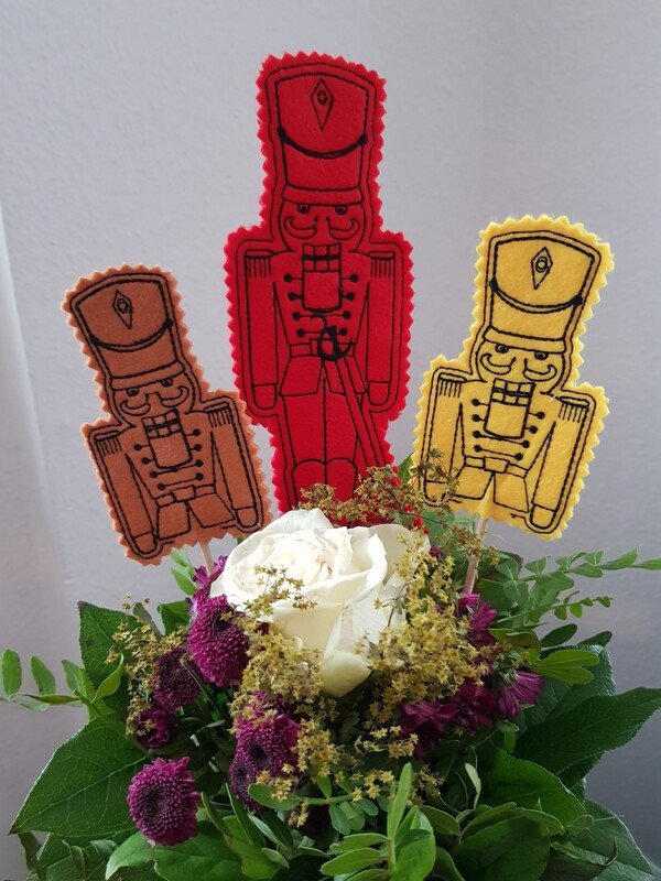 Nussknacker als Deko in der Weihnachtszeit! Gestickt werden sie als Anhänger oder als Stabstickdatei, das heißt, sie können auf einen Holzspieß aufgespießt und als Deko im Blumentopf verwendet werden!