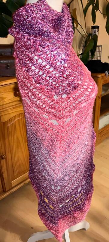 Die Größe des Tuches hängt von eurer Wollauswahl ab.