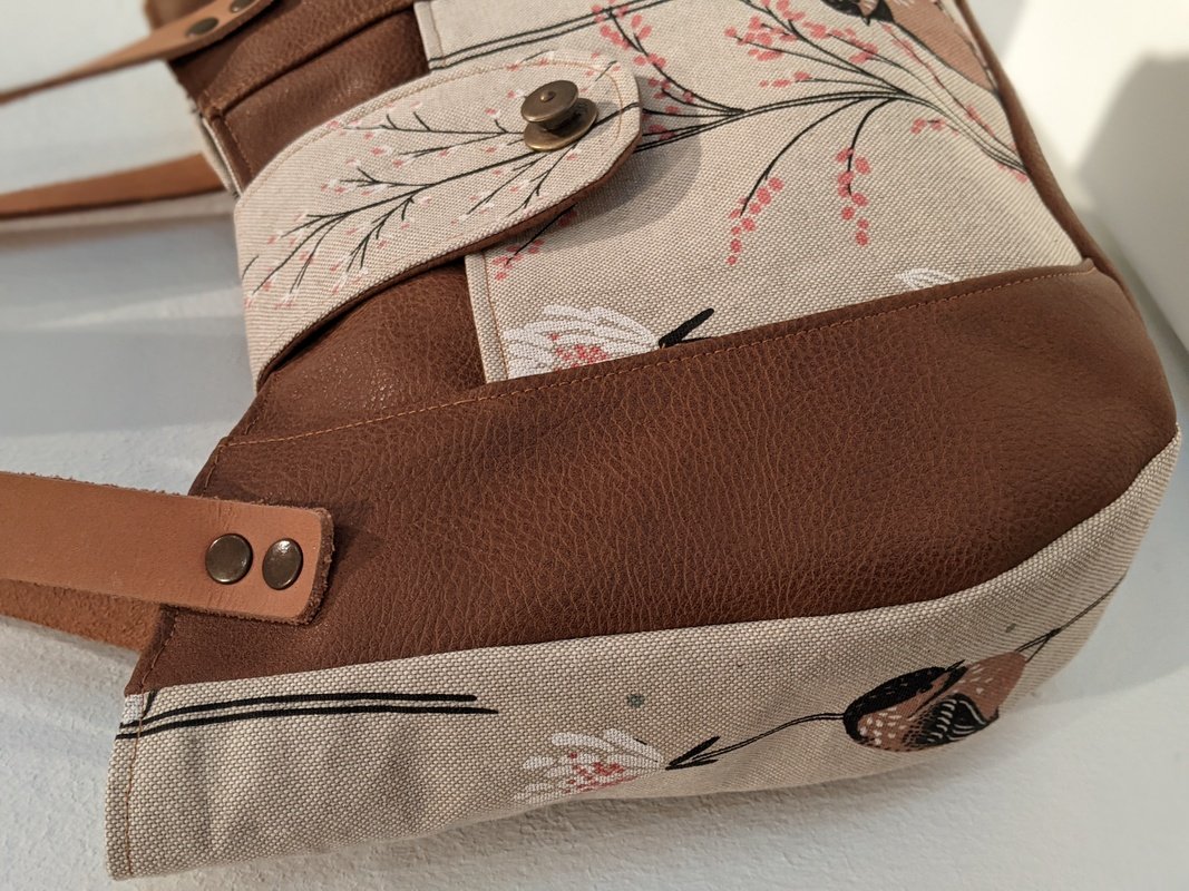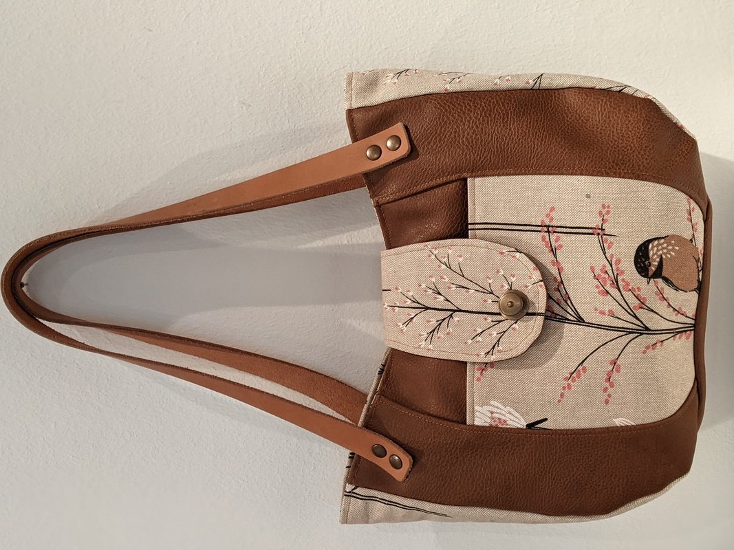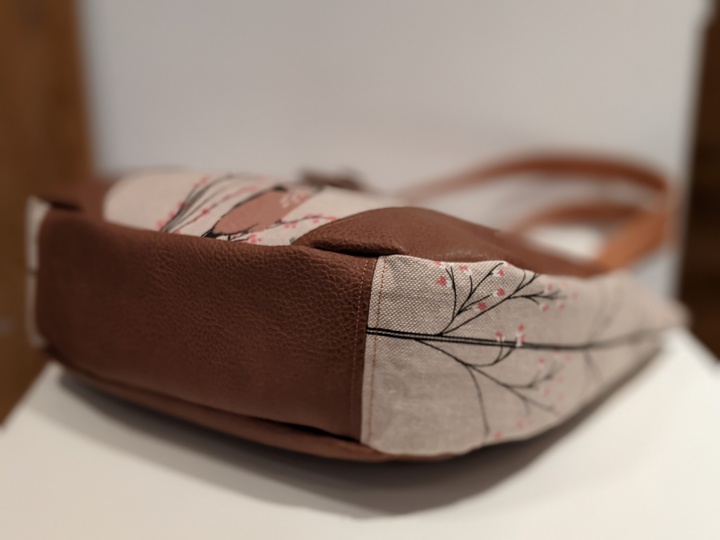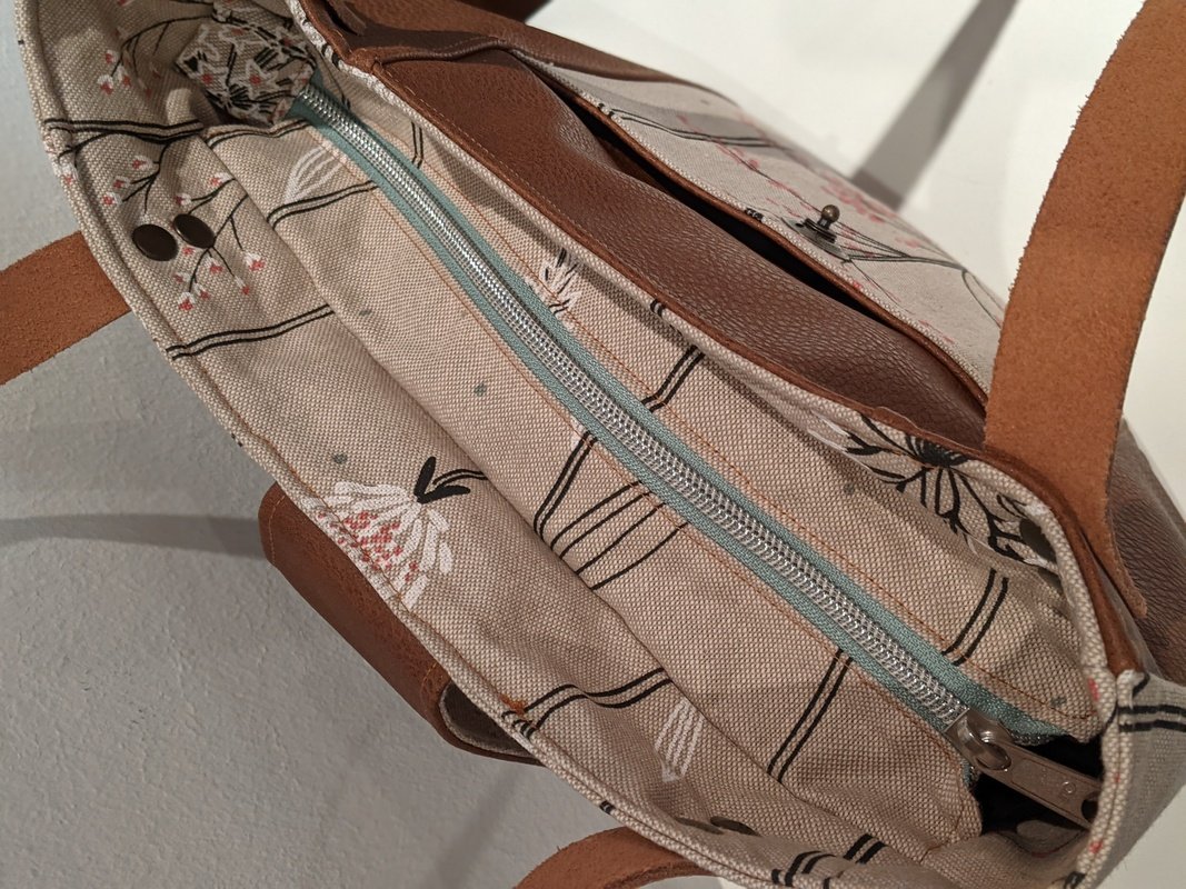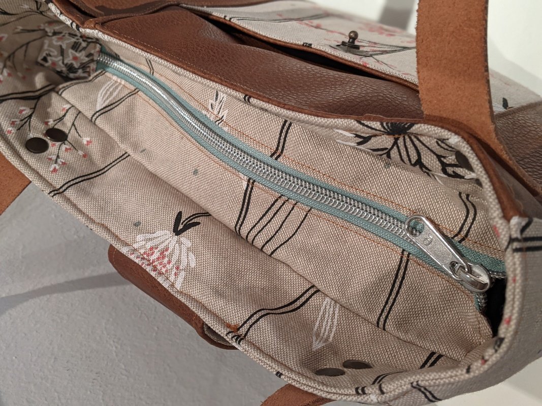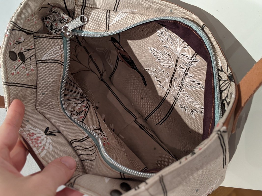 Stoffe besonders schön in Szene zu setzen. Die zweigeteilte Rückseite verleiht der Tasche