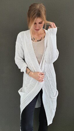 Diese lässige Strickjackjacke habe ich in 3 Oversize Größen geschrieben.