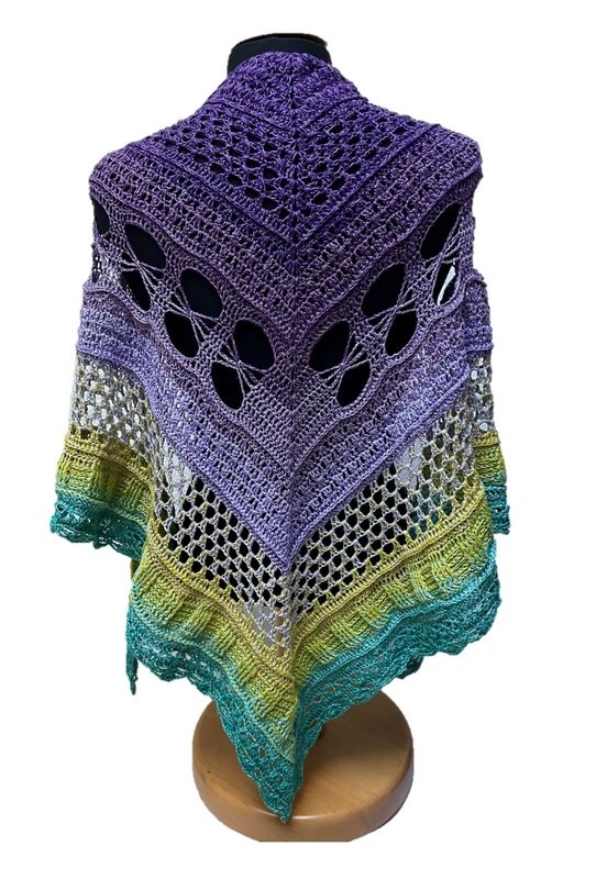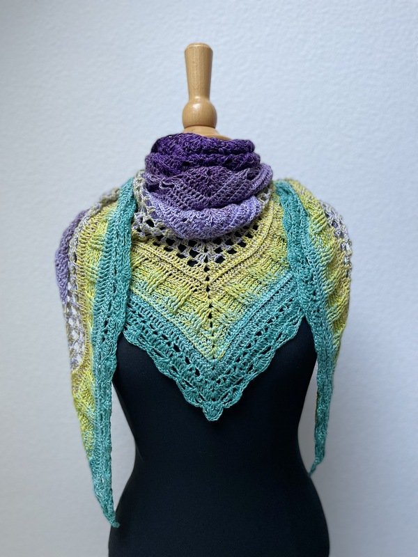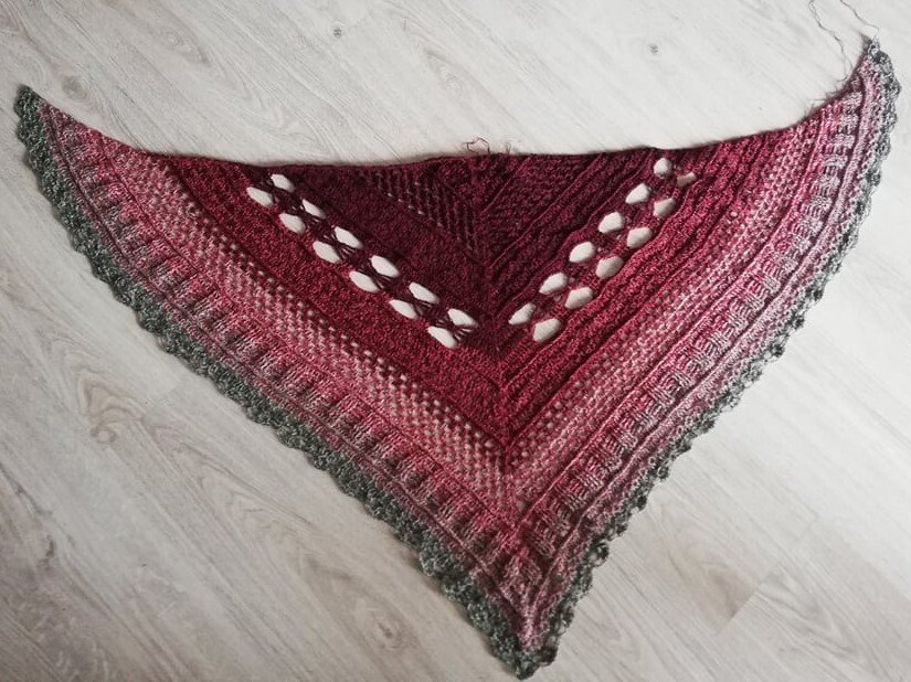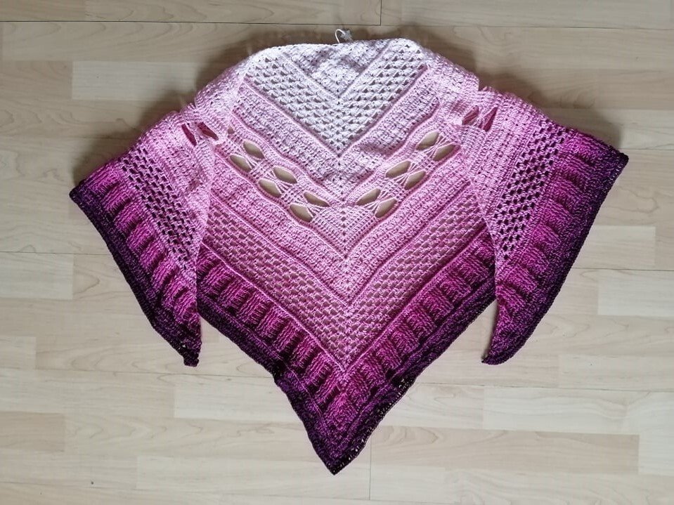 Mein Beispieltuch hat eine Spannweite von 1,75m und eine Tiefe von 0,82m.