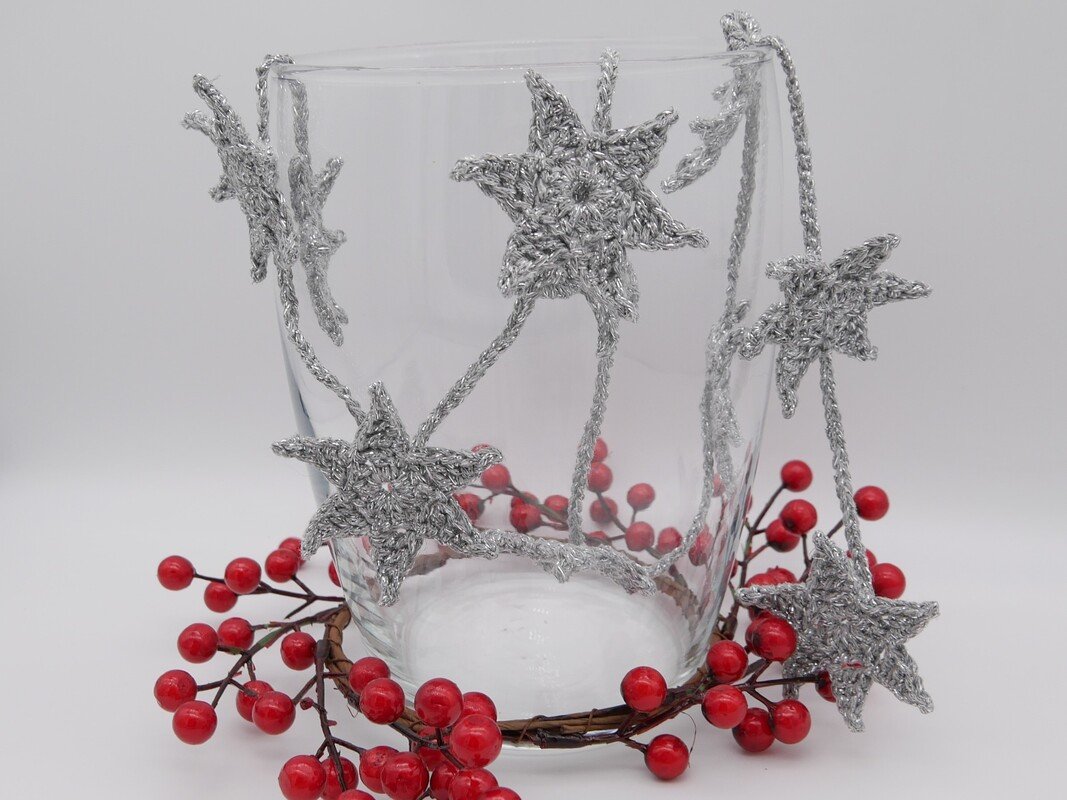 für die Anleitung wurde Baumwollgarn 120 m / 50 g in silber mit Glitzerfaden 20g verwendet