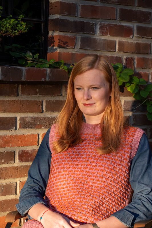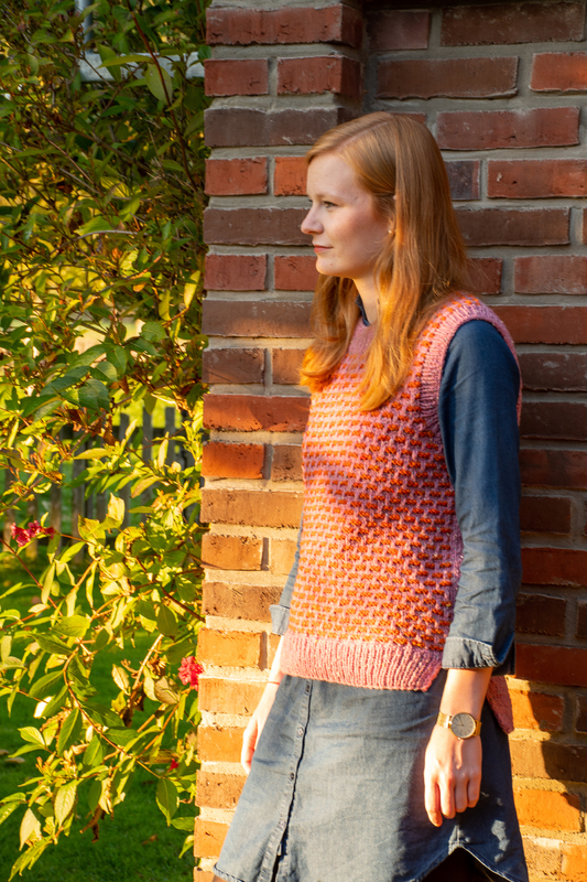 Das Modell würde mit der Landlust Tweedwolle im Hebemaschenmuster gearbeitet.