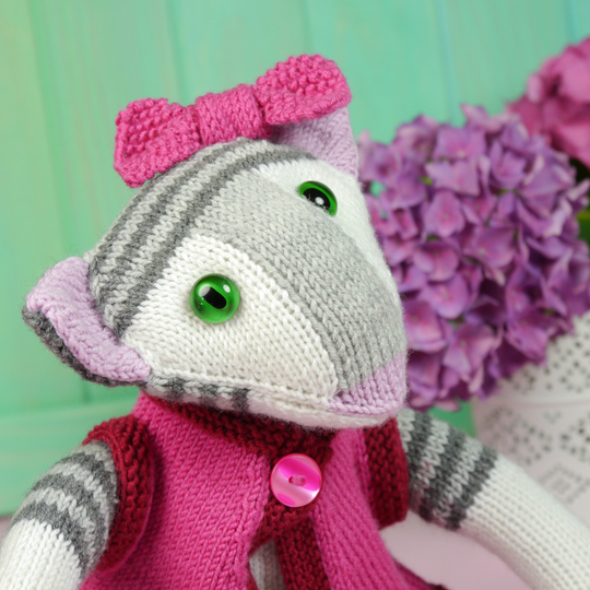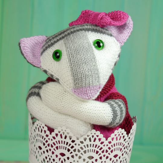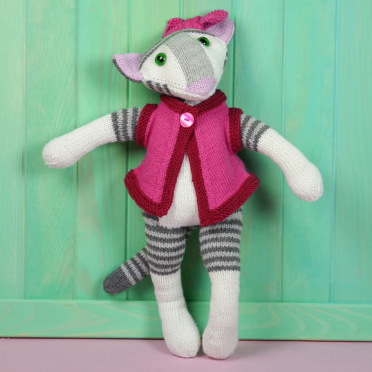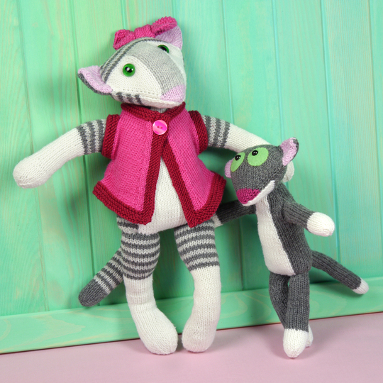 Es braucht etwas Zeit, Coco und ihr Cape zu stricken, aber da nur wenige Techniken benötigt werden, eignet sie sich gut für Anfänger:innen mit Geduld. Coco kann komplett in Reihen gestrickt werden; für alle, die das Stricken in Runden vorziehen, gibt es für die Arme, Beine und den Schwanz auch die Anleitung dafür.