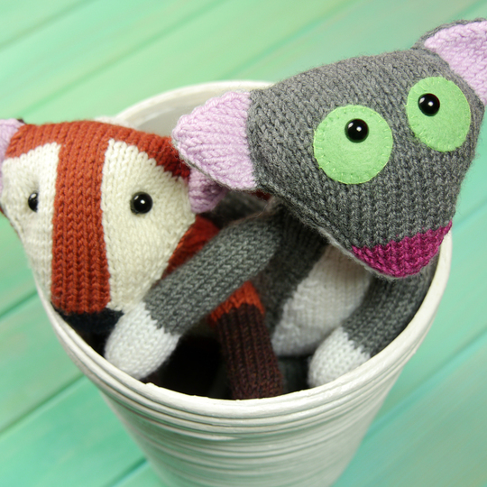 Da nur wenige Techniken benötigt werden, eignen sich die beiden Tunichtgute gut für Anfänger:innen. Sie können komplett in Reihen gestrickt werden; für alle, die das Stricken in Runden vorziehen, gibt es für die Arme, Beine und Schwänze auch die Anleitung dafür.