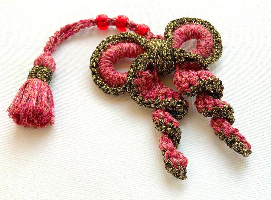 Die nette Lockenschleife als schnell gehäkelter Christbaumschmuck.