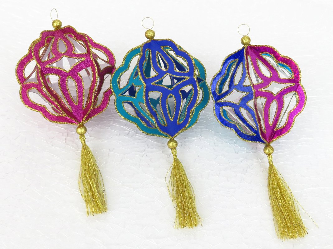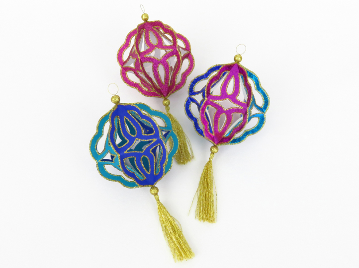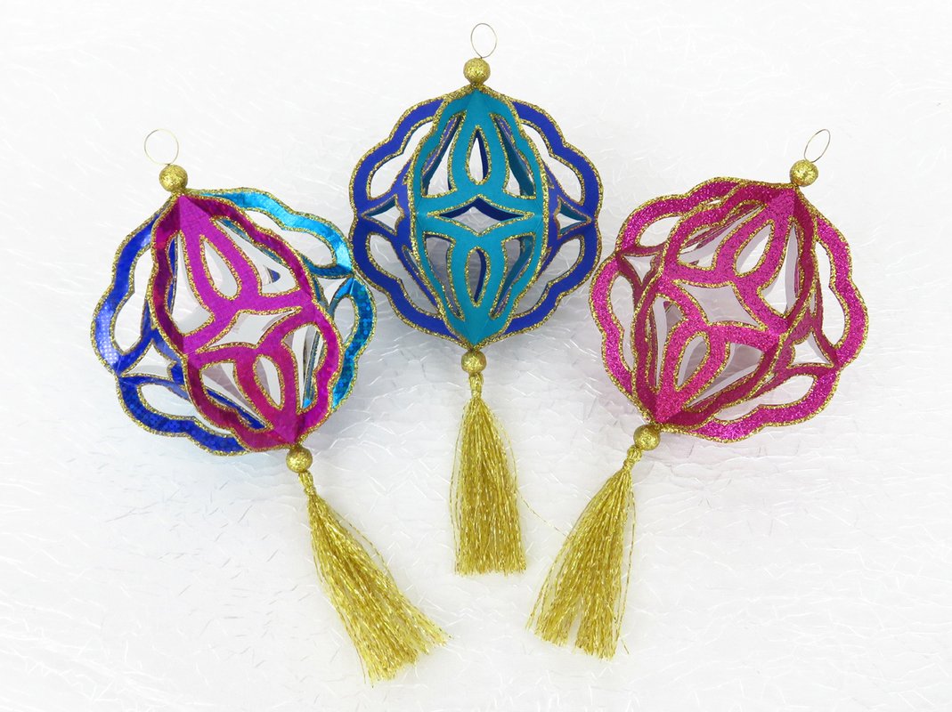 Nun gibt es noch mehr Christbaumanhänger in meinem Store, für die du nicht nur Fotokarton, sondern auch andere feste Effektpapiere verwenden kannst: Ich habe bei diesen Kugeln Papiere zwischen 120 g/m² und 300 g/m² getestet und bei allen klappte es problemlos!