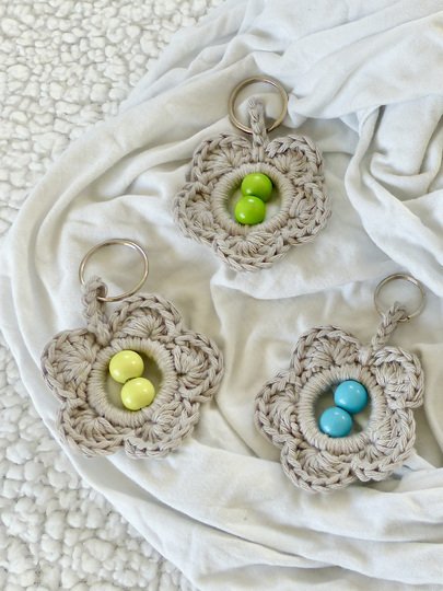 Mit den von mir verwendeten Materialien wird der Schlüsselanhänger ca. 6 cm groß.