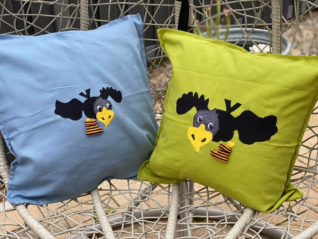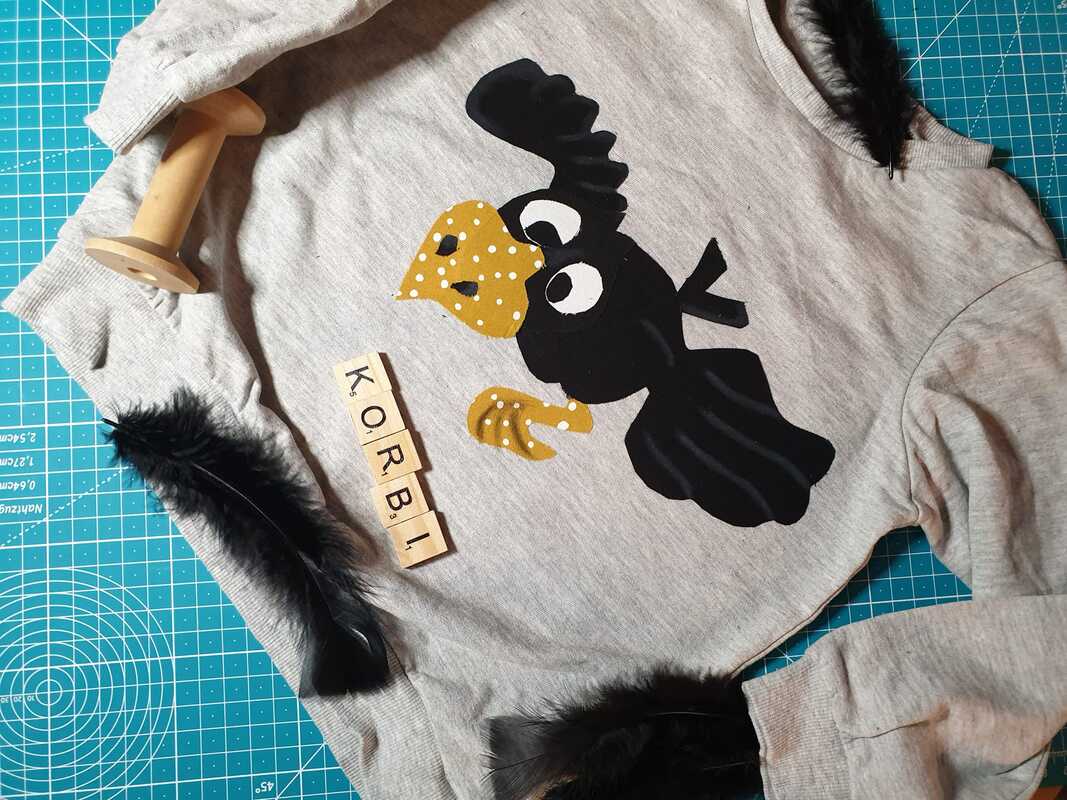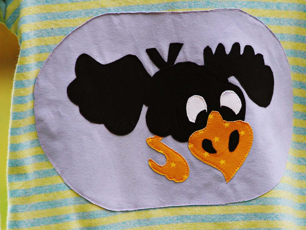 Die Vorlage zu Korbi enthält eine bebilderte ausführlich beschriebene Anleitung als PDF Datei. Die Vorlage gibt es in zwei verschiedenen Größen, damit der Rabe dezent auf eine Tasche oder auffällig auf einen Pullover genäht werden kann. Diese kann aber auch individuell angepasst werden.