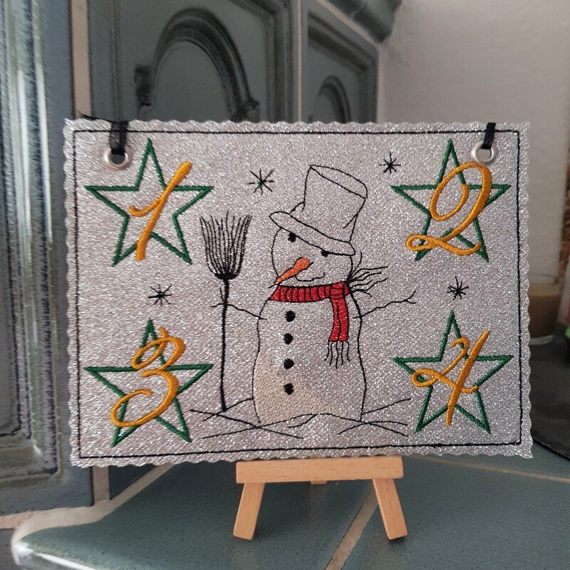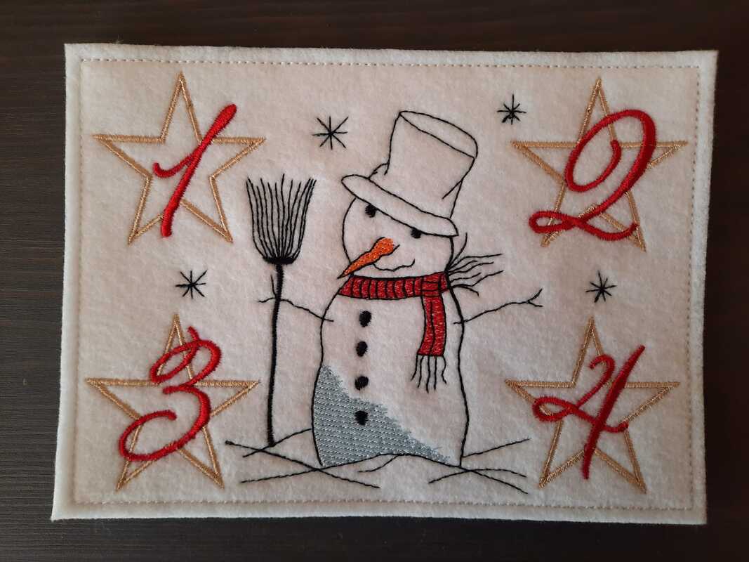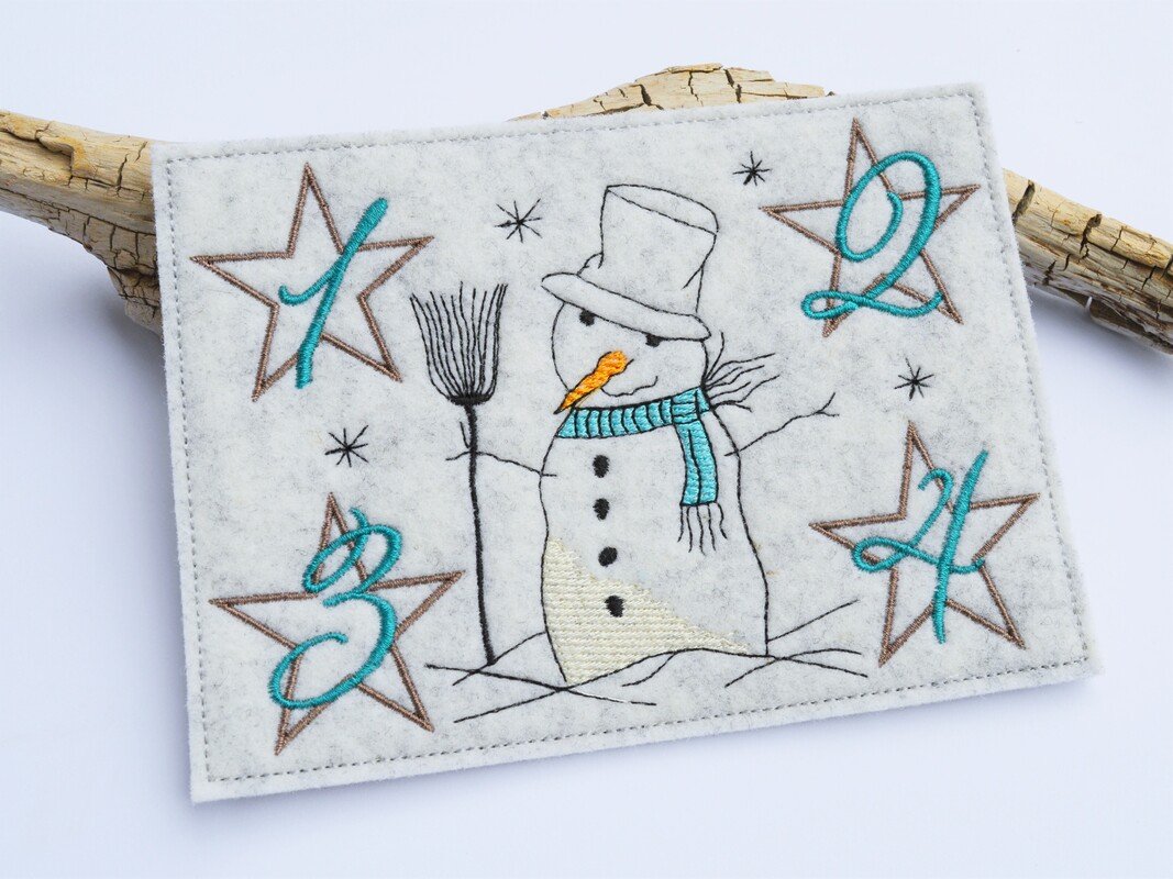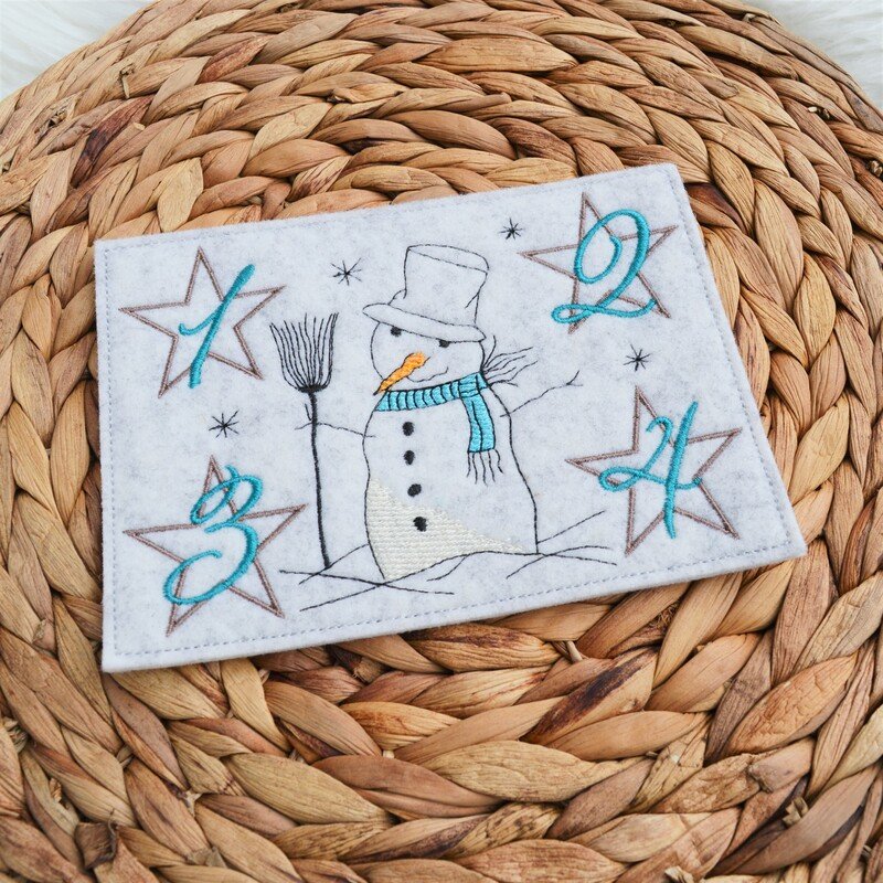 Stickdatei Schneemann als ITH Untersetzer für den Advent,