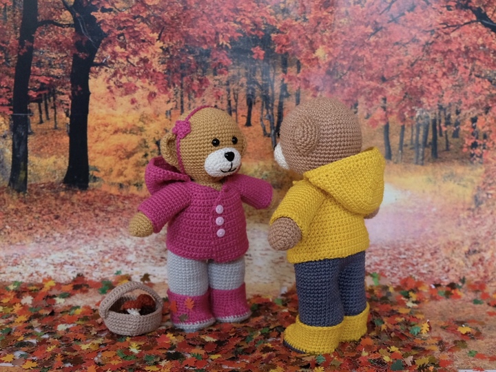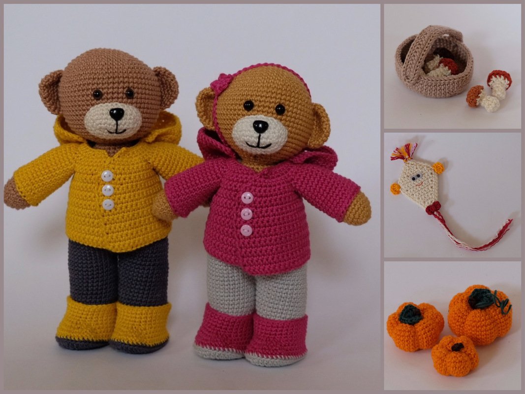 Diese Anleitung ist als Ergänzungsset für die anderen Anleitungen von "Theo und Thea Teddy" gedacht und beinhaltet nur die Herbst-Outfits, sowie ein Körbchen mit Pilzen, 3 verschiedene Größen Kürbisse und einen Drachen. Die Anleitung für den Teddy ist nicht inbegriffen.