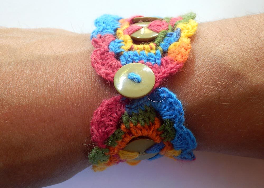 Ein tolles Set, schön in fröhlichen Farben ist das immer ein Hingucker. Ich habe es hier in ganz bunten Farben gewerkelt. Doch ich kann mir vorstellen, mit edlen Perlmutknöpfen und passenden Farben des Garns kann es auch ganz edel aussehen.