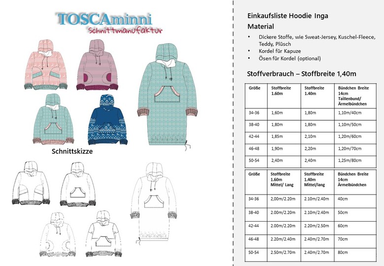 Stoffempfehlung: dicke Stoffe, wie Fleece, Teddystoff, Plüsch, dicker Jersey Sweat