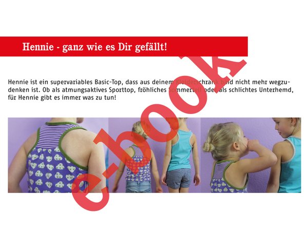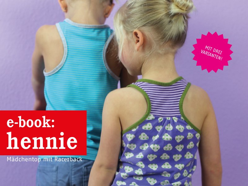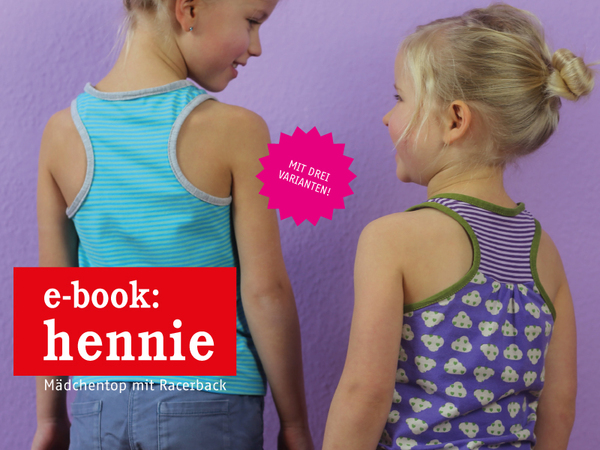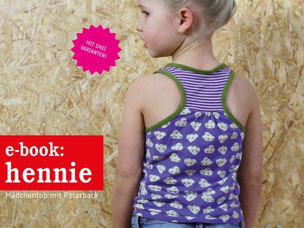 Dieses tolle Mädchentop mit Racerback macht alles mit. Egal ob als Unterhemd, Sporttop oder als Urlaubsteil, in HENNIE fühlst du dich immer pudelwohl. Das Rückenteil läßt sich mit Kräusel oder ohne, mit Teilung oder ganz pur nähen - ganz wie es Dir gefällt.