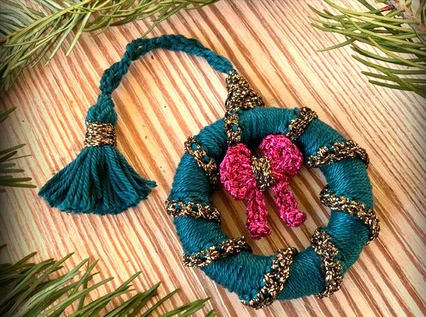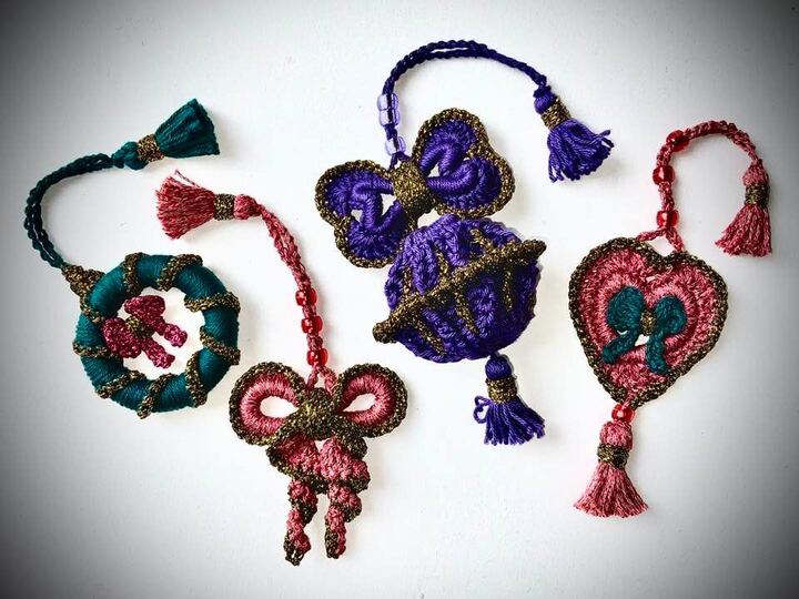 besteht aus den Anleitungen..einfach jeden Anhänger 4- 5 mal häkeln und schon ist der Christbaum geschmückt!