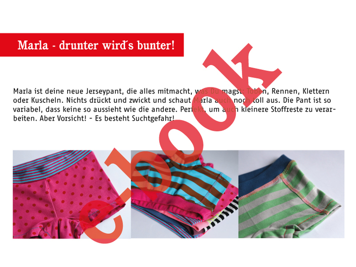 MARLA ist deine neue Jerseypant, die alles mitmacht, was Du magst: Toben, Rennen, Klettern oder Kuscheln. Nichts drückt und zwickt und dabei schaut MARLA auch noch toll aus. Die Pant ist so variabel, dass keine so aussieht wie die andere, sie lässt sich in drei Varianten nähen. Perfekt, um auch kleinere Stoffreste zu verarbeiten.