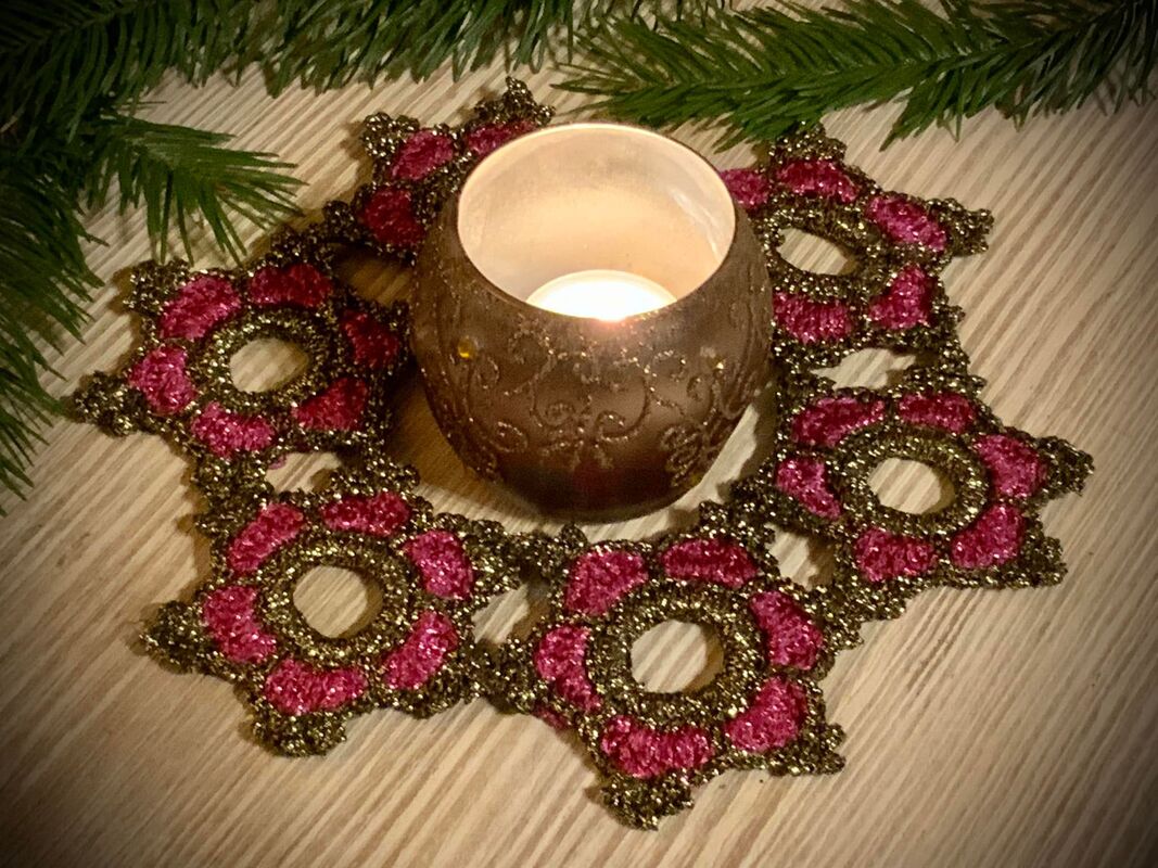 Das festliches Deckchen mit 6 Sternen passt super um ein schönes Teelichglas...ein tollerSchmuck für Deinen festlichenTisch