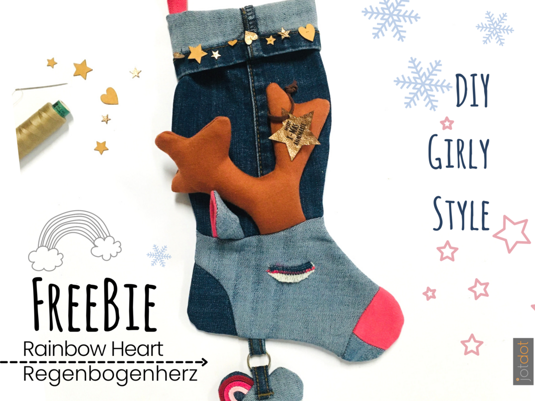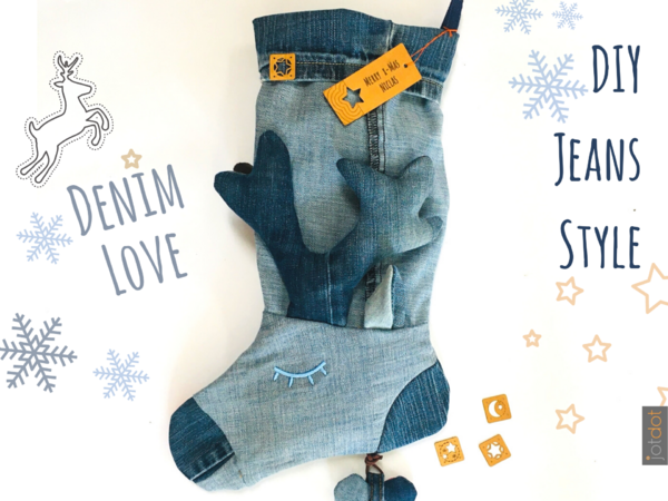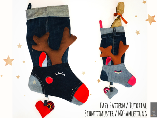 Die Schnittgröße der Xmas Socke wird durch die Größe des Jeans (Hose) bestimmt, die Du zum Upcyceln nimmst.