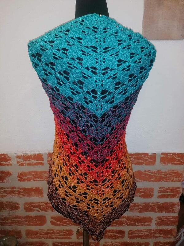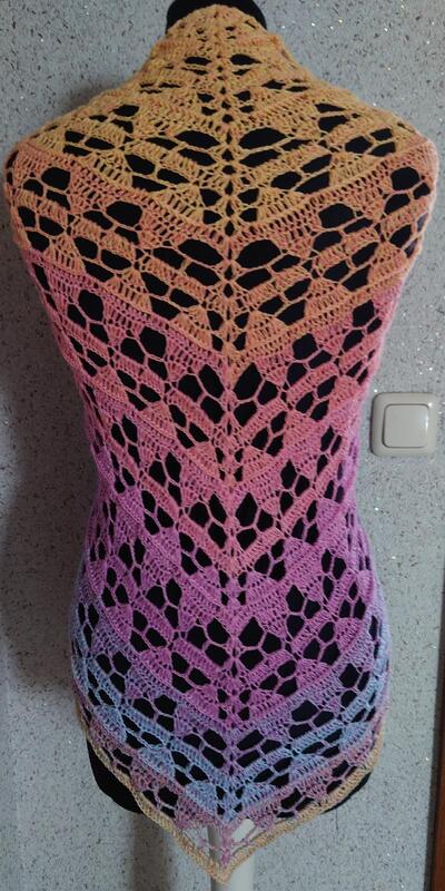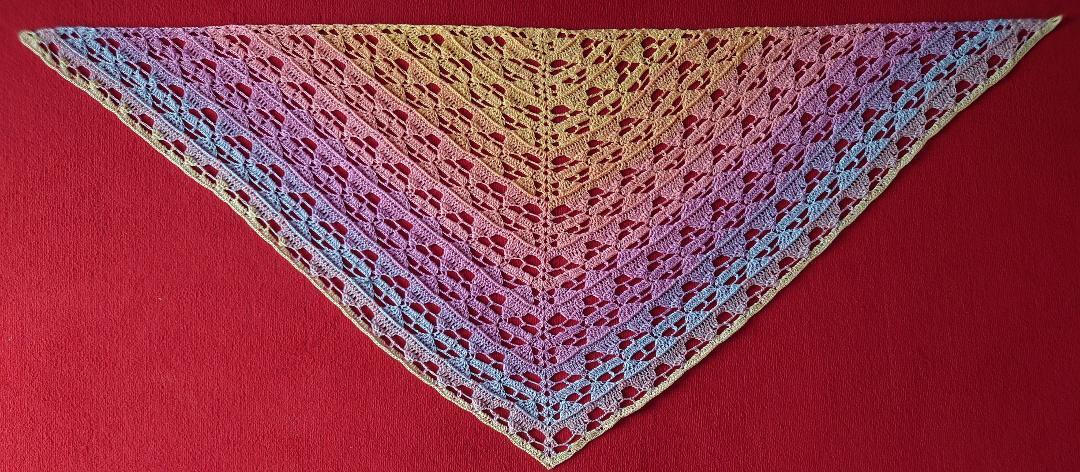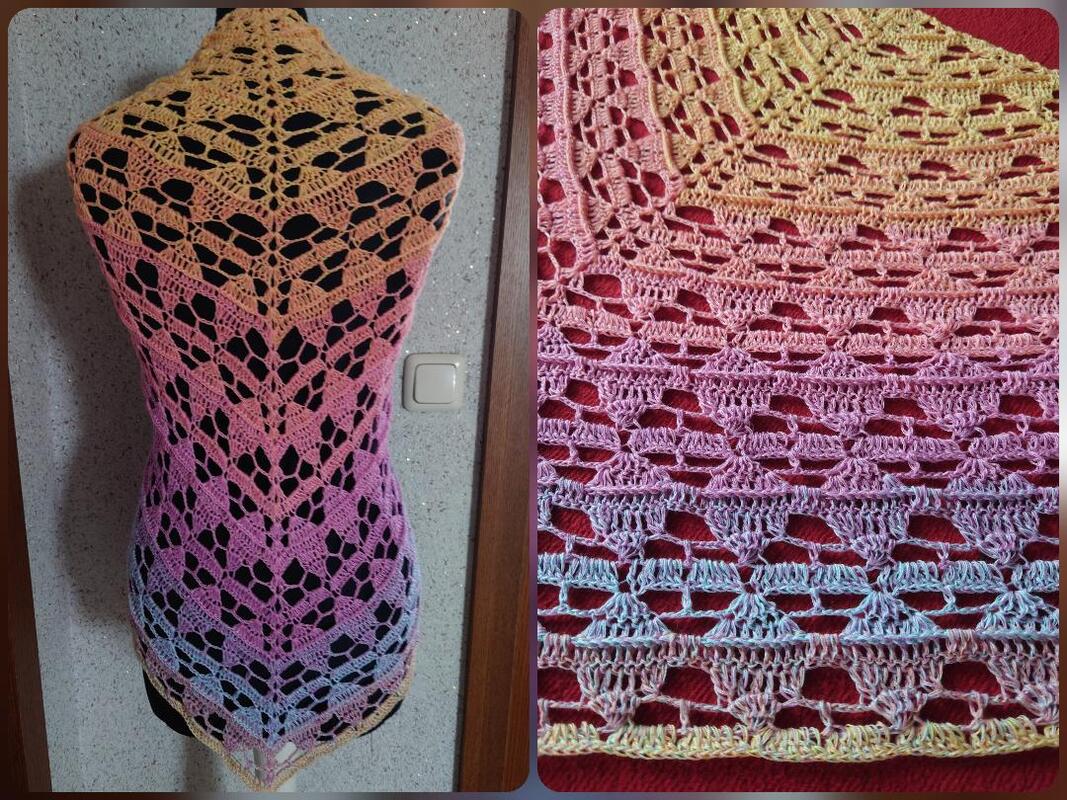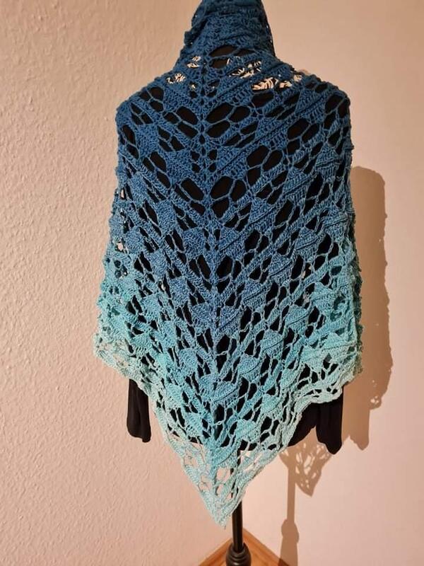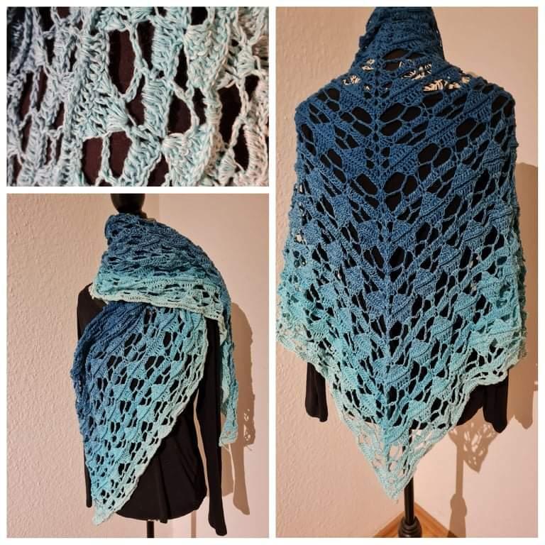 Die Anleitung zum Tuch besteht aus schriftlich ausformulierten Reihen und beinhaltet eine Häkelschrift.