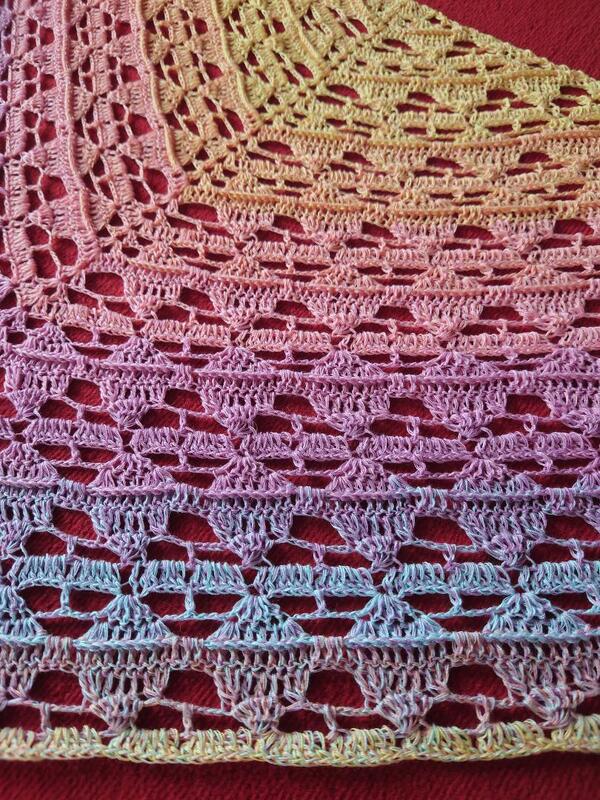 Das Tuch Babette besteht aus sich immer wiederholenden Reihen, die ein schönes Gesamtmuster ergeben.