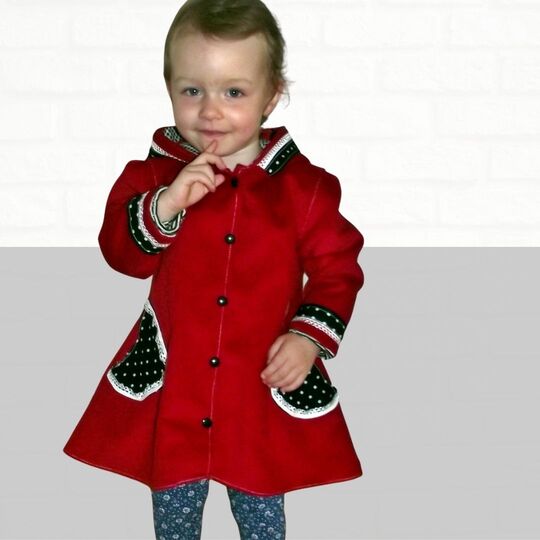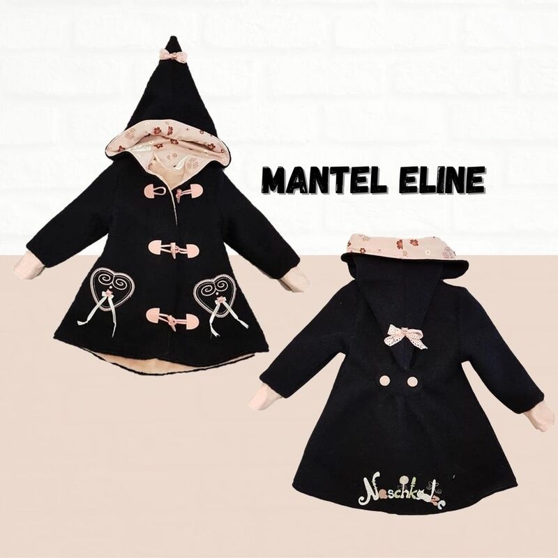 Mit dem Schnittmuster Eline nähst Du Dir einen flippigen Kindermantel in A-Linie in verschiedenen Varianten für kleine Damen. Du kannst verschiedene Kapuzen / Krägen, Taschen und Ärmel miteinander kombinieren und den Mantel immer wieder neu gestalten.
