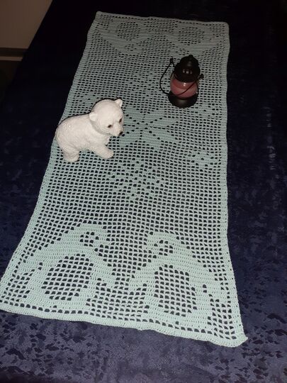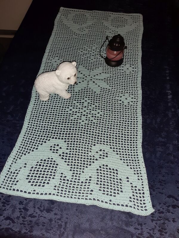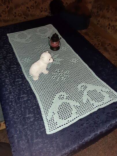 Verleihen Sie Ihrem Tisch mit unserem handgehäkelten Tischläufer mit Pinguinmotiv einen charmanten Touch in der Winter- und Weihnachtszeit.