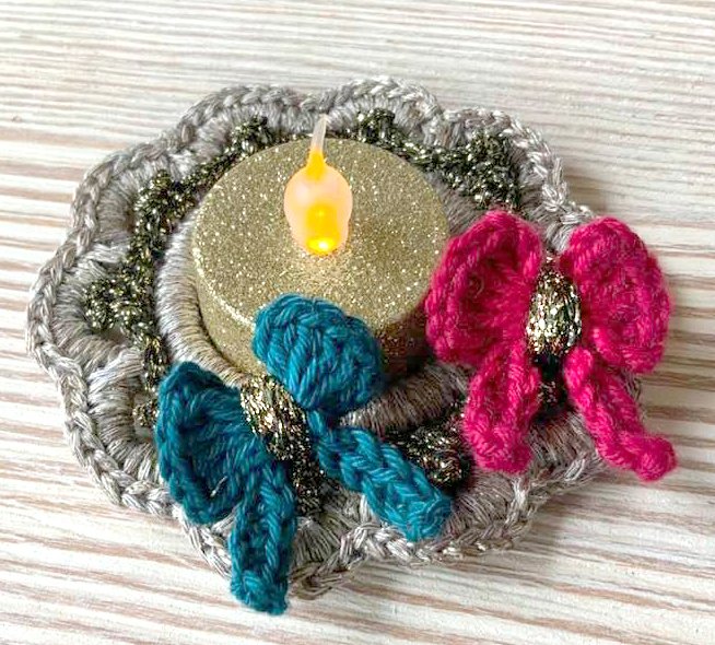 Schneller kleiner Teellichhalter oder kleiner Türkranz mit süßen Schleifen