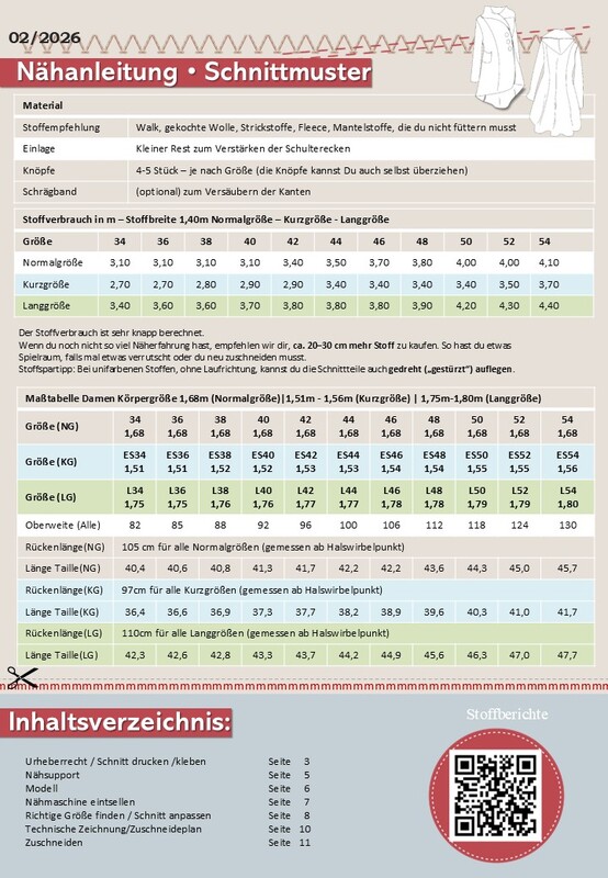 Die Maßtabelle, Angaben zum Stoffverbrauch und weitere Modellbeispiele findest du in der Übersicht der Nähanleitungen.