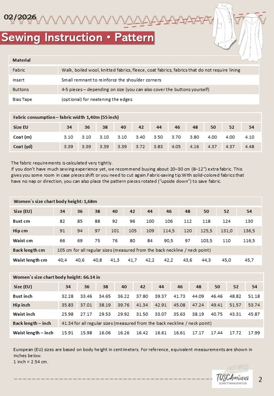 Das Schnittmuster ist für Stoffe aus Wolle, gekochter Wolle oder Fleece ausgelegt. Dadurch ersparst Du Dir das Abfüttern.