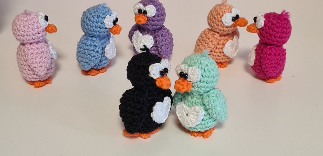Fertig gehäkelte Pinguine nach dieser Anleitung dürfen eigenverantwortlich verkauft werden.