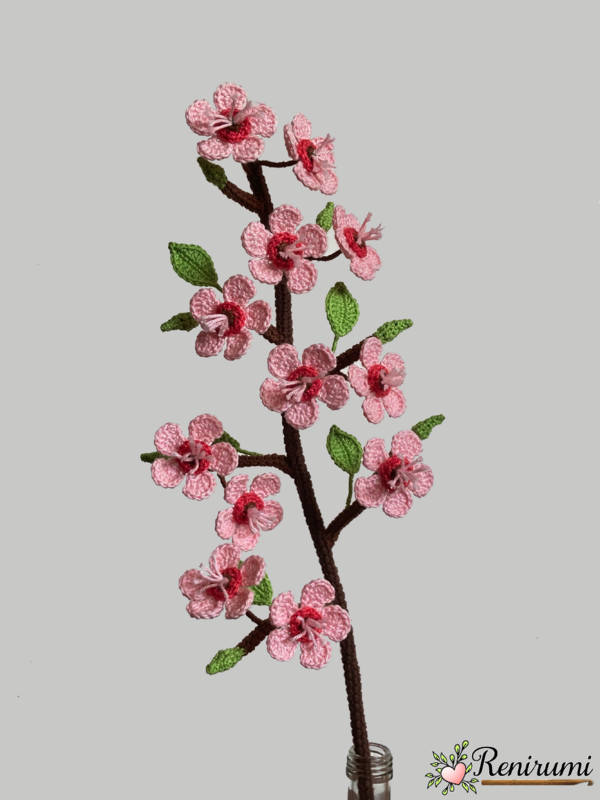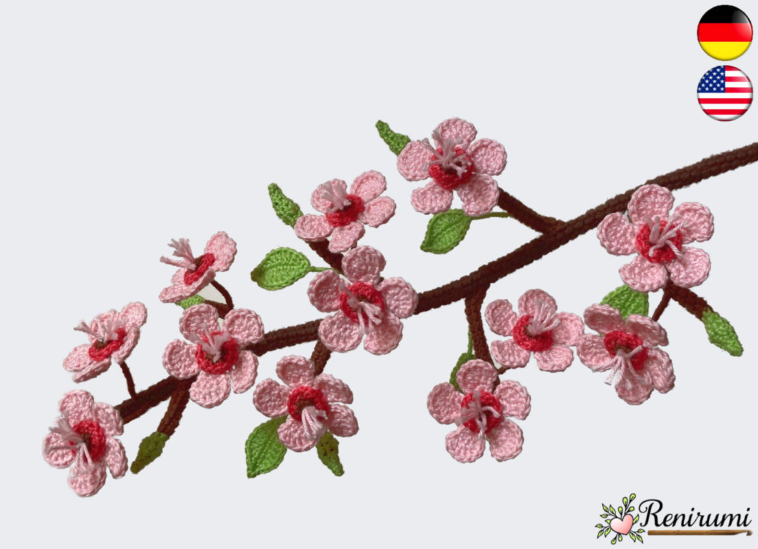 Mit dieser 9-seitigen, reichlich bebilderten Häkelanleitung kannst du diesen hübschen Kirschzweig sicher und einfach nachhäkeln.