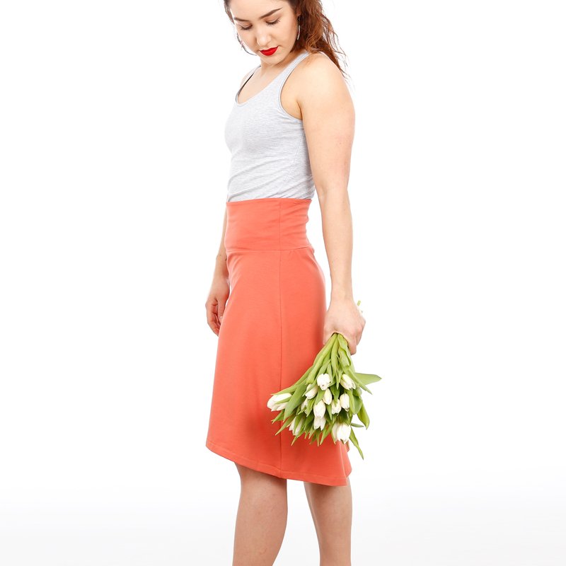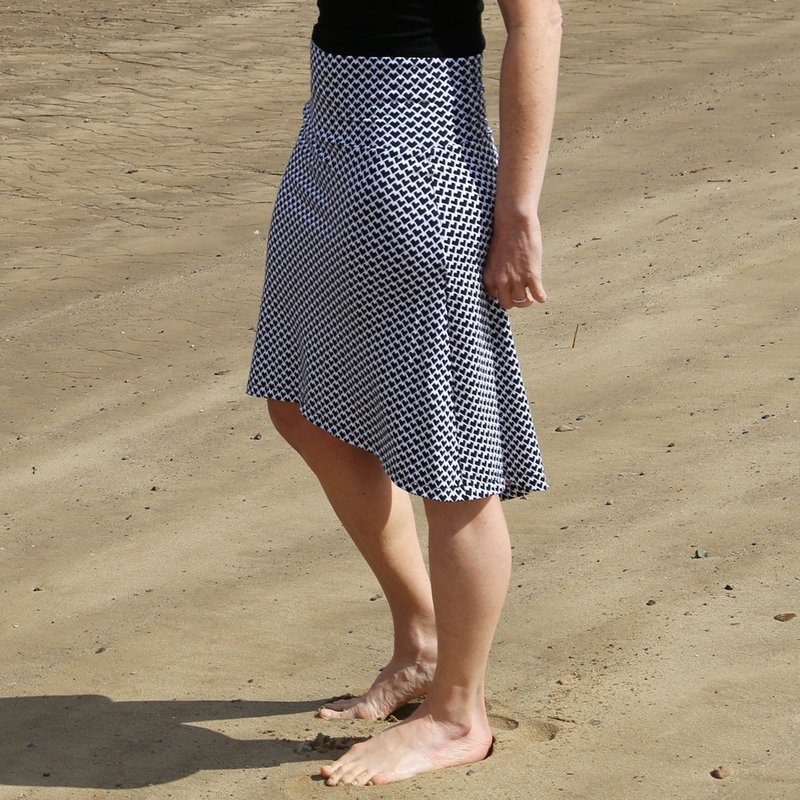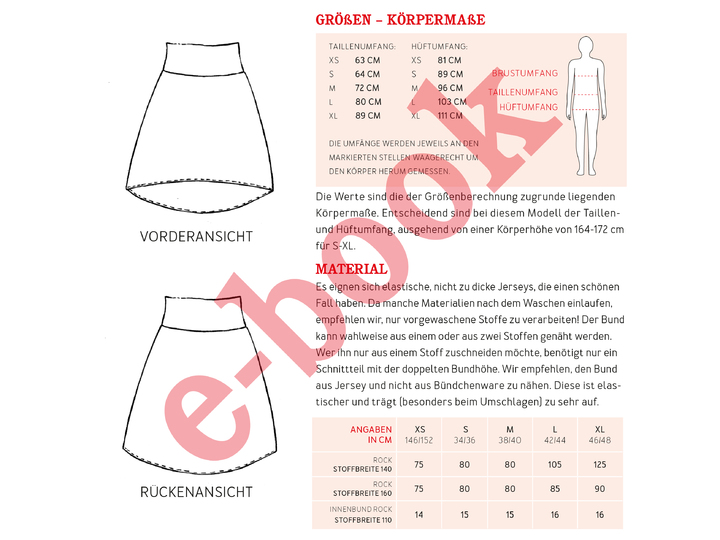 FRAU EVA ist der perfekte Rock für Deine Urlaubsgarderobe. Er ist superschnell genäht und sitzt richtig bequem! Sein breites Bündchen läd ein zu Spielereien. Du kannst es einfarbig oder aus zwei Stoffen nähen und durch das Umklappen des Bündchens wird der Rock in der Länge variabel. Der besondere Hingucker an FRAU EVA ist ohne Zweifel die Saumkante, die vorne kurz über dem Knie endet, nach hinten aber länger wird und dort die Kniekehlen umspielt - oder Du trägst ihn kürzer - ganz wie Du magst.