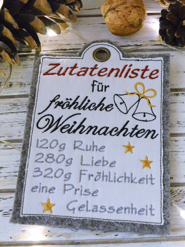 Stickdatei Weihnachten mit Rezept für fröhliche Weihnachten als ITH Stickdatei,