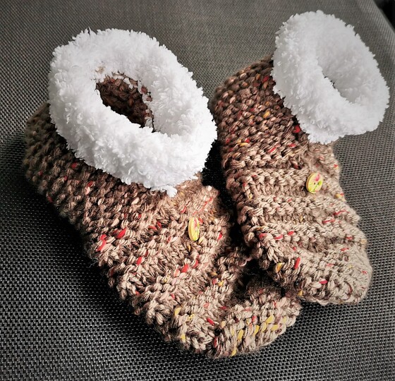 Auch kleine Anfänger können diese Hausschuhe mit Leichtigkeit stricken.