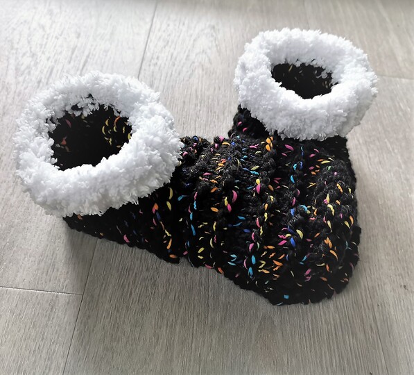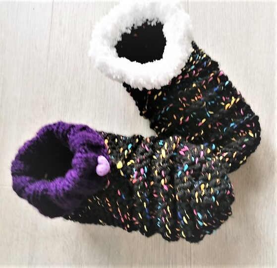 So schnell hast du bestimmt noch keine Hausschuhe gestrickt :-)