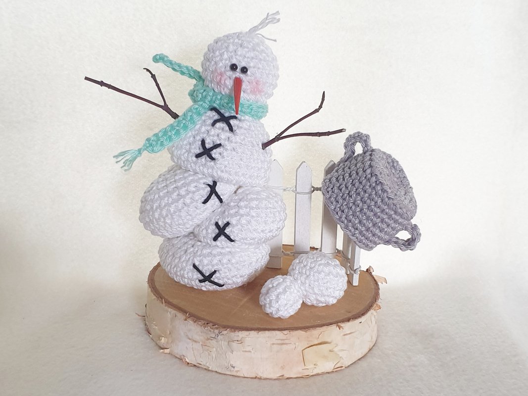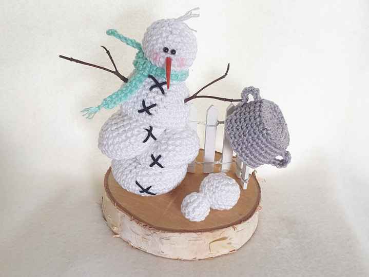 Der Schneemann hat mit dem angegebenen Garn eine Größe von cirka 10cm