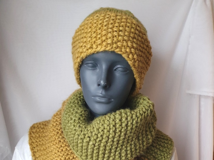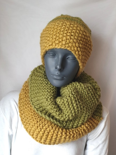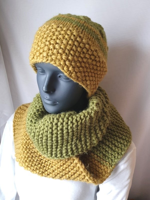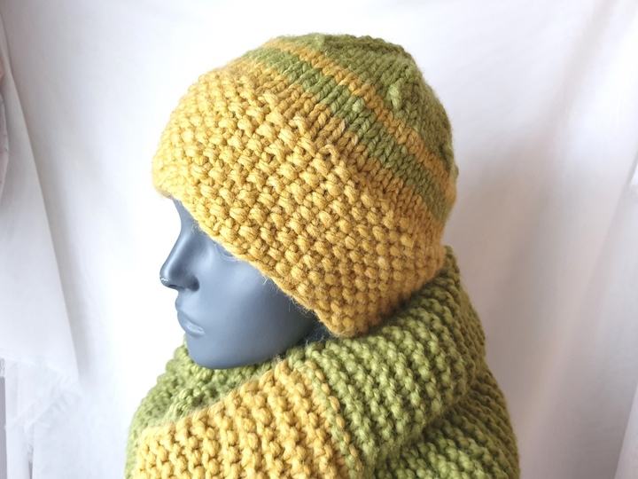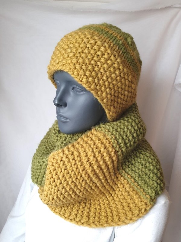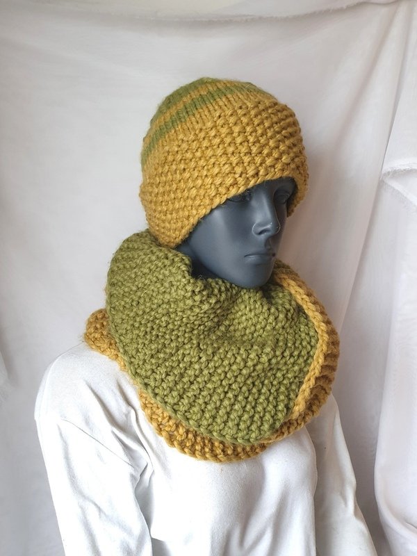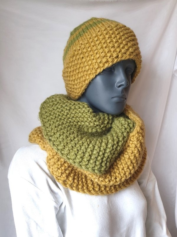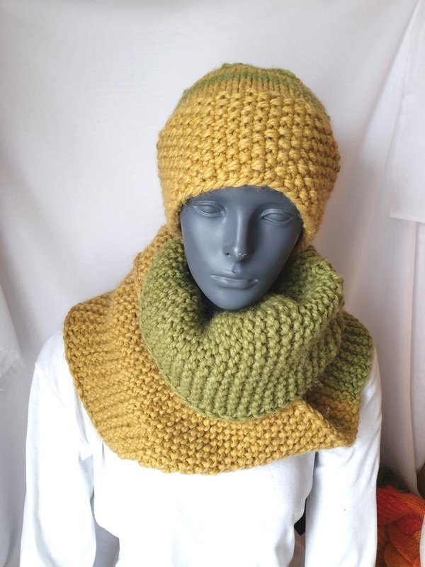 Kuschlig warm und zudem schnell gestrickt ist dieses Set bestehend aus einer Mütze und einem Loop oder Schal