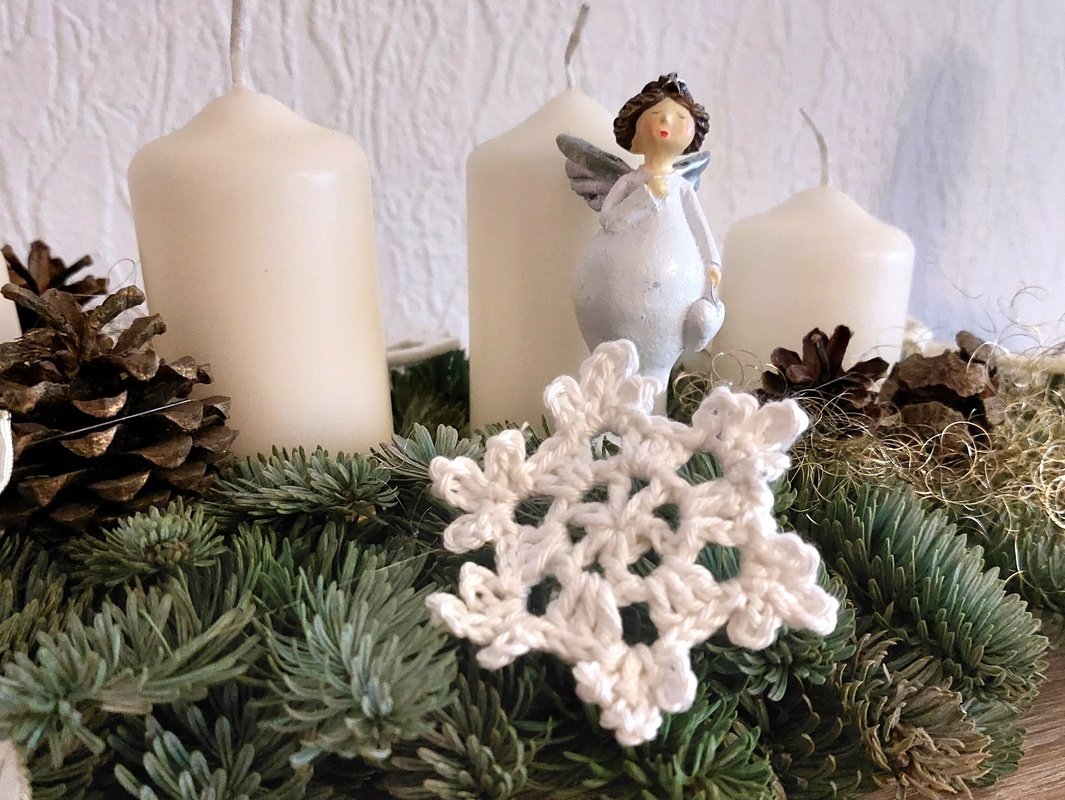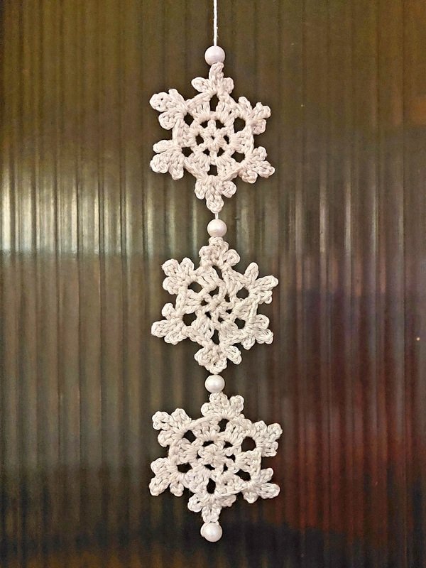 Scheeflöckchen Weißröckchen ...... Ihr könnt mehrere Schneeflocken untereinander, als Mobile für das Fenster, zusammennähen oder einzeln als Tischdeko benutzen. Auch an einer Luftmaschenkette als Girlande machen sich die Schneeflocken gut. Als Geschenkanhänger finden sie auch ihren Platz.